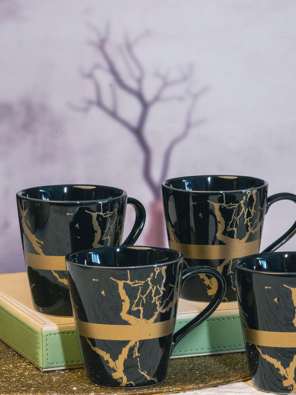 White Gold Porcelain Tea/Coffee Large Mug with Gold Print (Set of 4pcs)