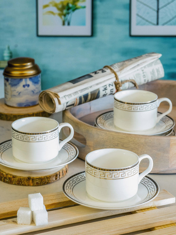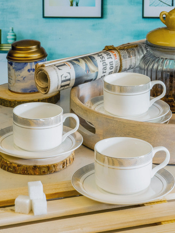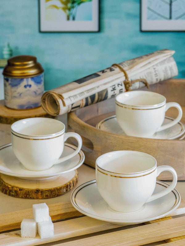 White Gold Porcelain Tea Cup Saucer Set (Set of 6pcs Cup & 6pcs Saucer)