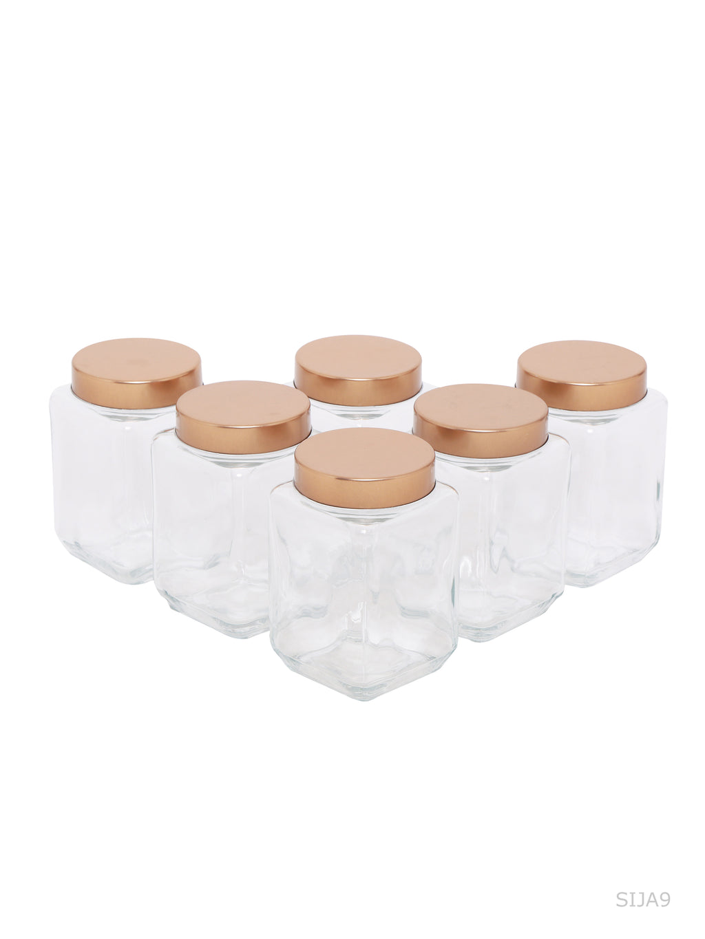 Copper Cube Small Square Glass jar Set with Metal lid (Set of 6 Pcs )