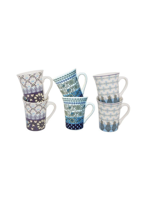 Fine Porcelain Mug with Multi Color Design ( Set of 6 Cup )