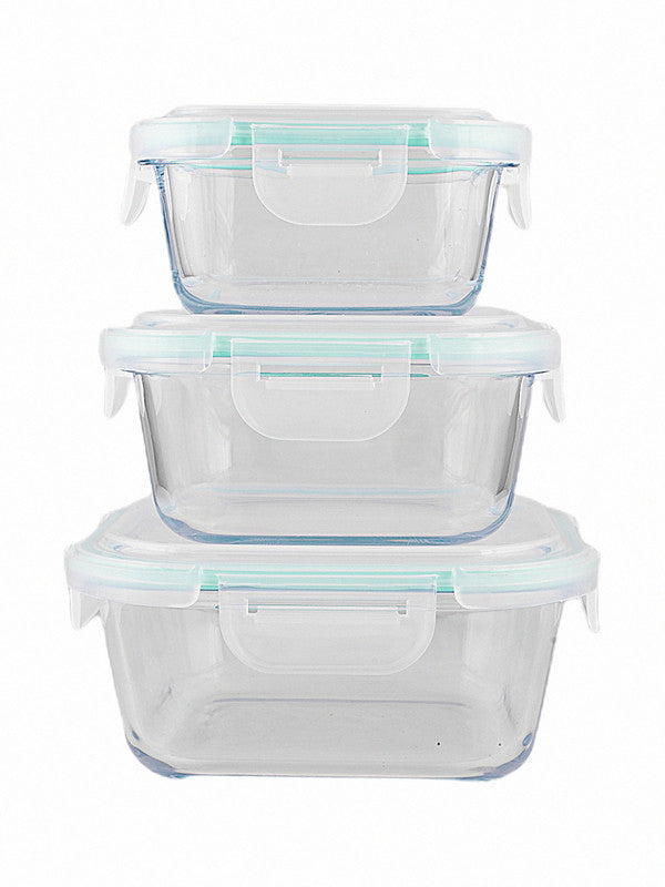 Glass Storage Square Bowl with Plastic Lid (Set of 3pcs)