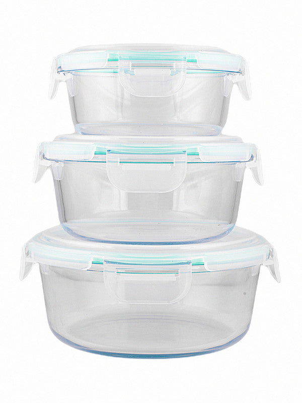 Glass Storage Round Bowl with Plastic Lid (Set of 3pcs)