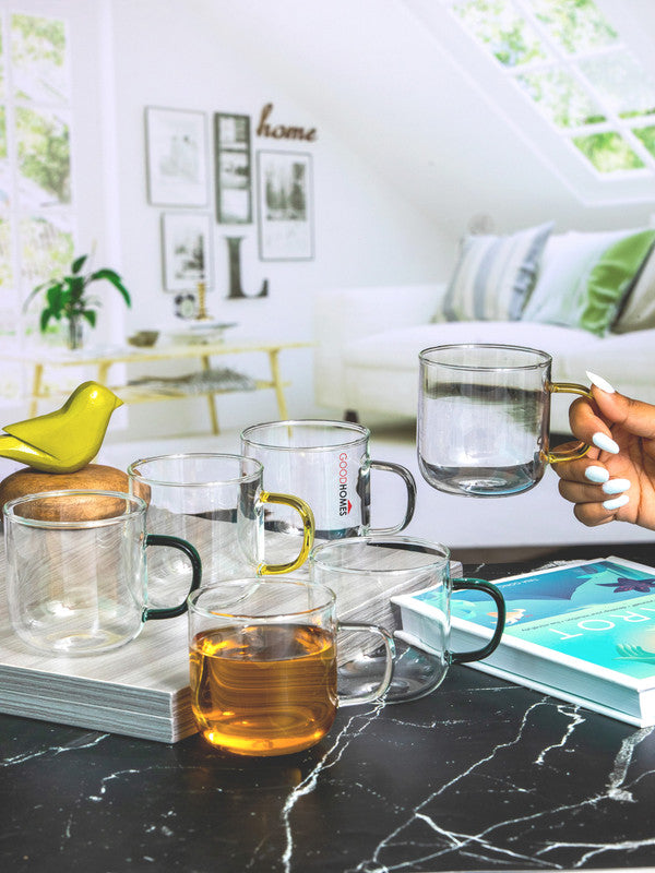 Glass Tea/Coffee Mug with Coloured Handle Set of 6pcs