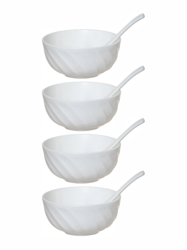 Goodhomes Bone China Soup Set (Set of 4pcs Bowl & 4pcs Spoon)