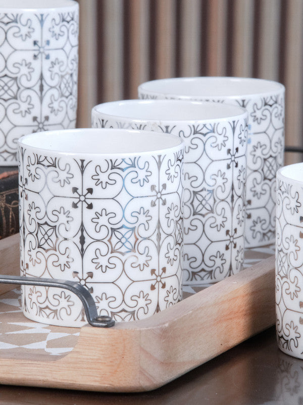 Goodhomes Bone China Coffee Mug with Real Platinum Print (Set of 6pcs)