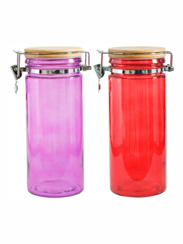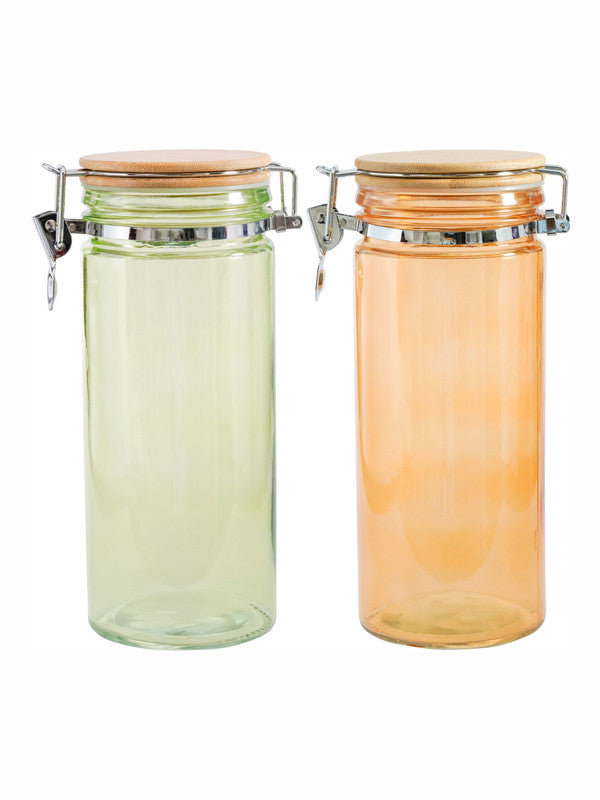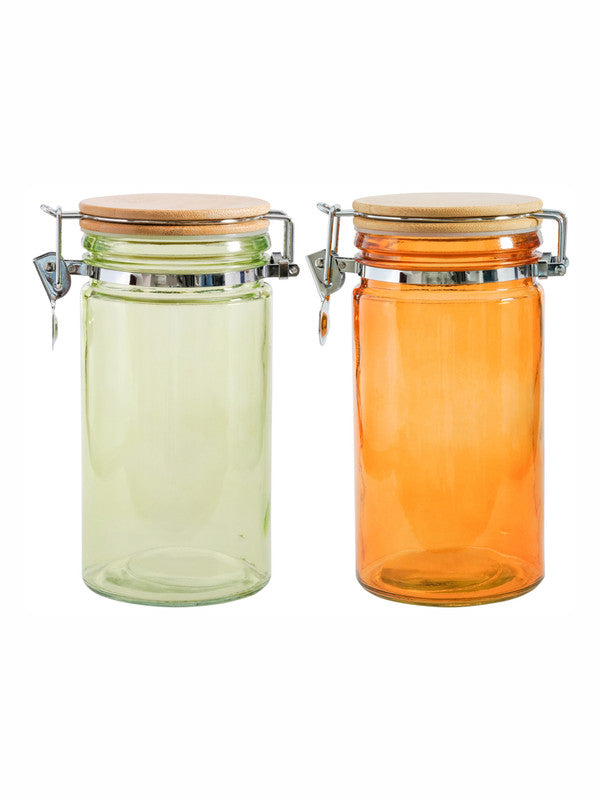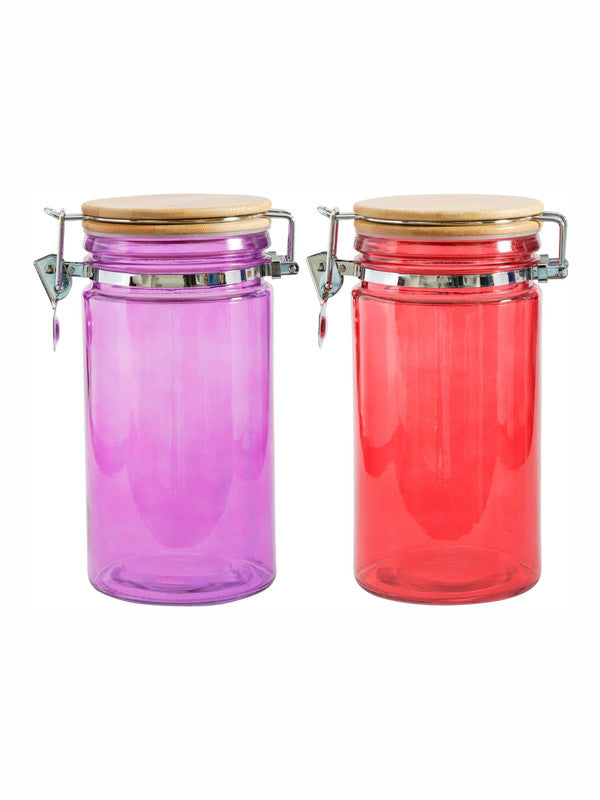 Goodhomes Color Glass Storage Jar with Wooden Clip Lid (Set of 2pcs)