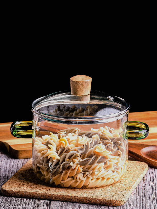 Goodhomes Glass Casserole with coloured Handle and Glass Lid with Wooden Knob