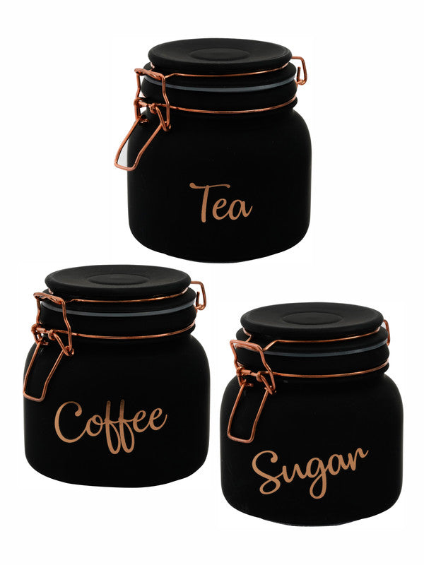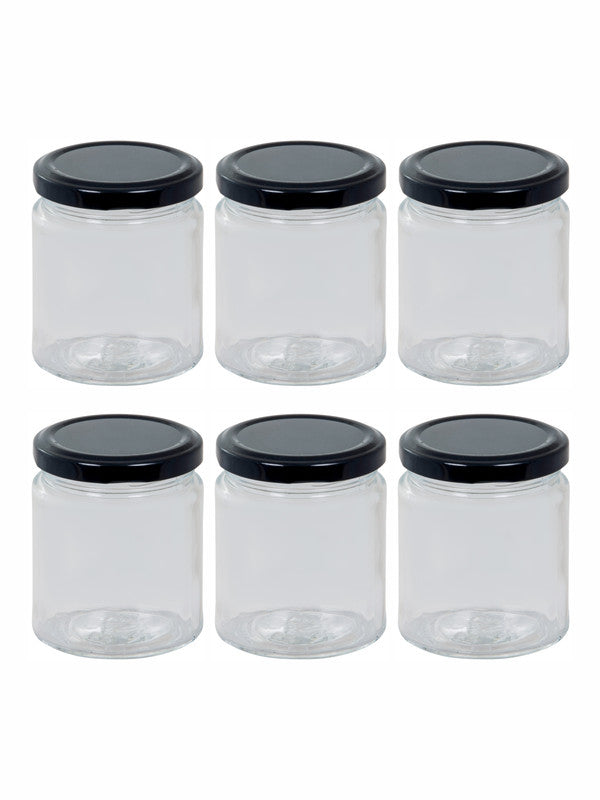 Goodhomes Glass Storage Jar with Black Metal Lid (Set of 6pcs)