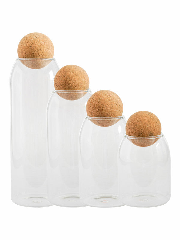 Goodhomes Glass Storage Jar with Cork Ball Lid (Set of 4pcs)