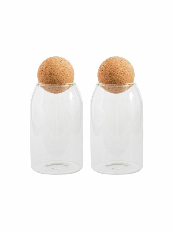 Goodhomes Glass Storage Jar with Cork Ball Lid (Set of 2pcs)