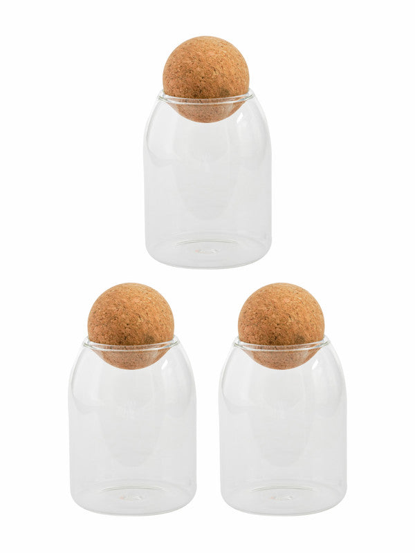 Goodhomes Glass Storage Jar with Cork Ball Lid (Set of 3pcs)