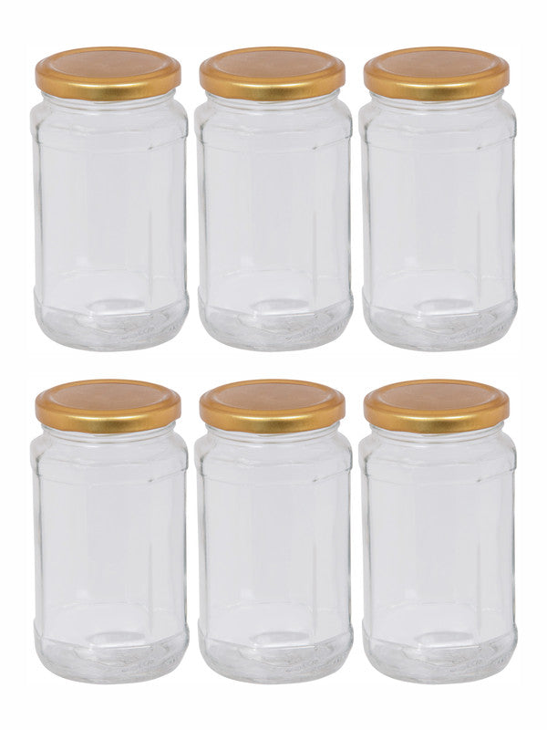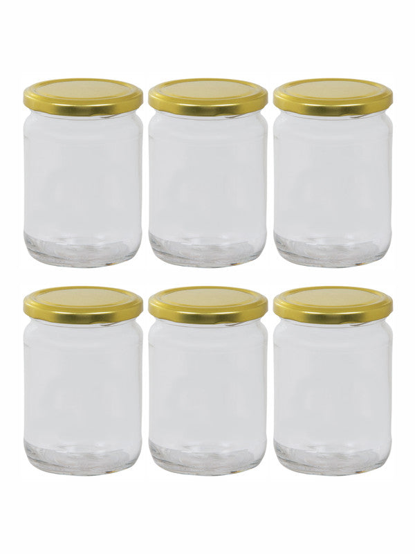Goodhomes Glass Storage Jar with Gold Color Lid (Set of 6pcs)