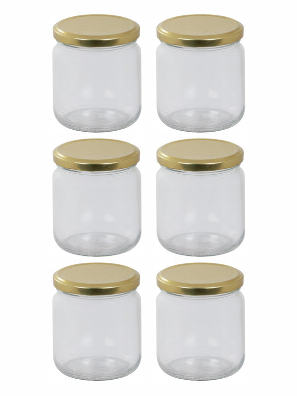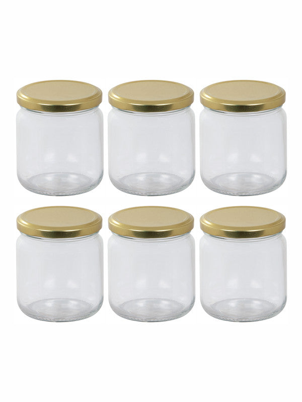 Goodhomes Glass Storage Jar with Gold Metal Lid (Set of 6pcs)
