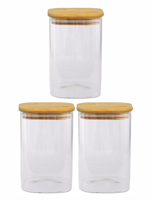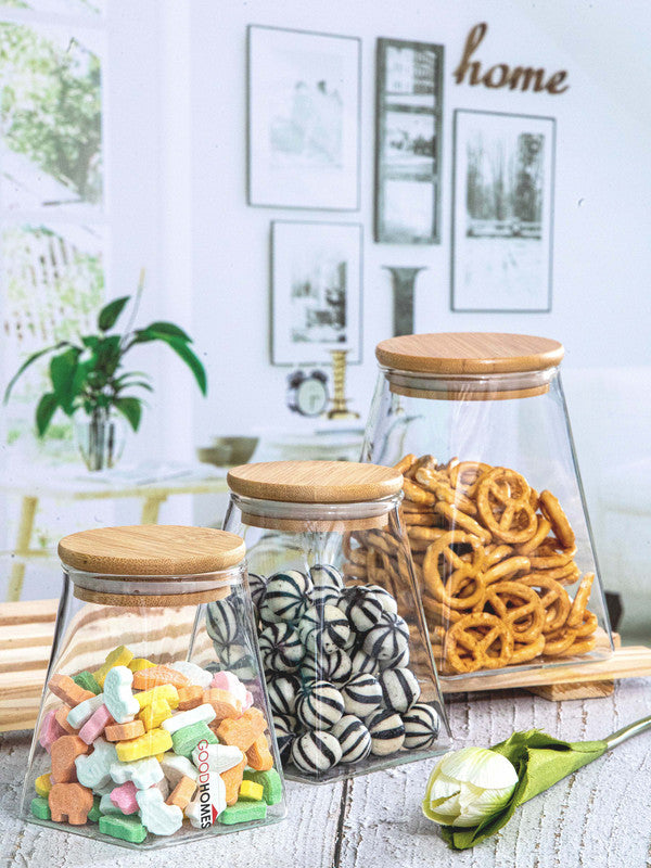 Goodhomes Glass Storage Jar with Wooden Lid (Set of 3pcs)