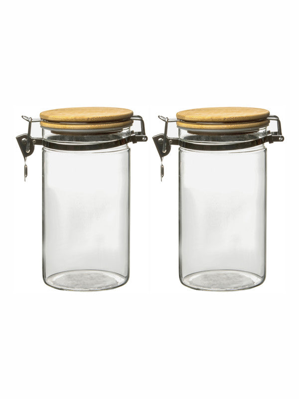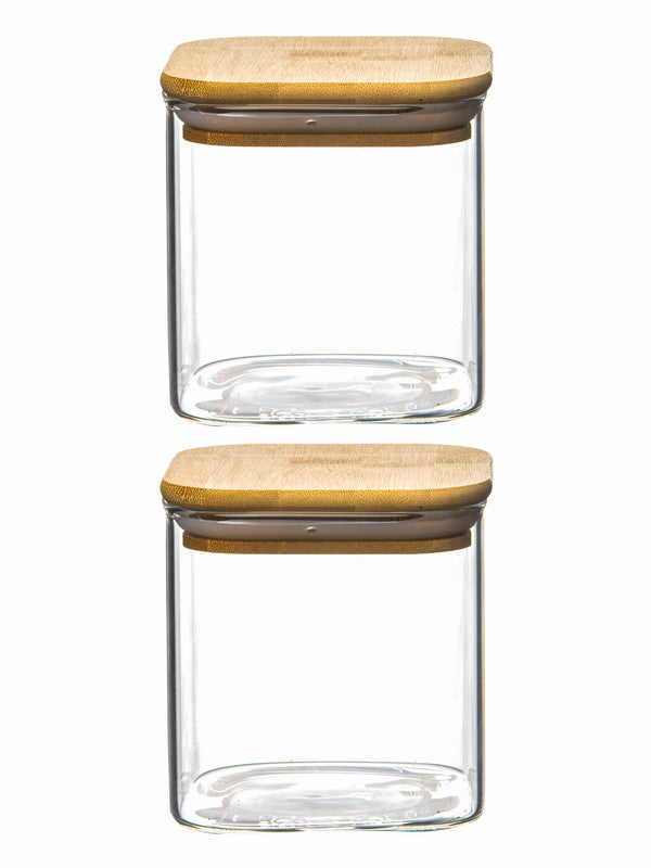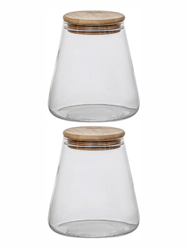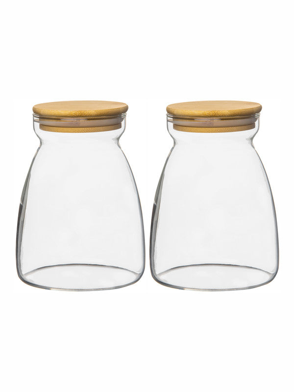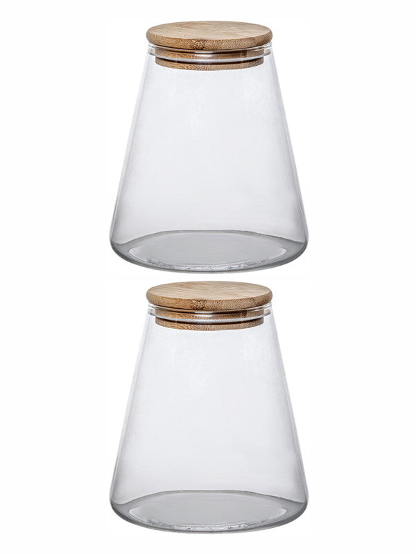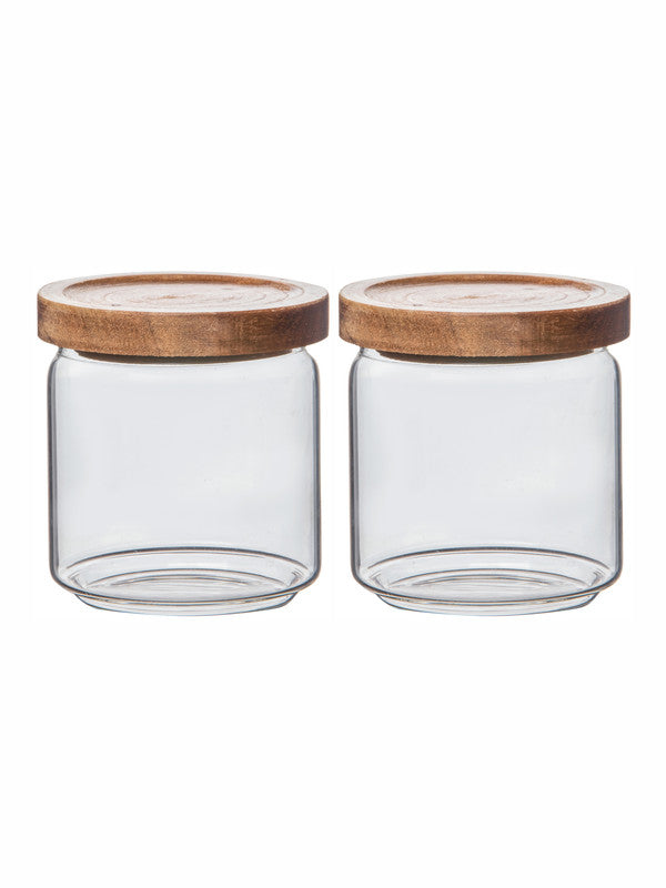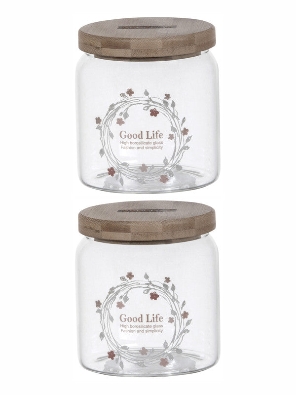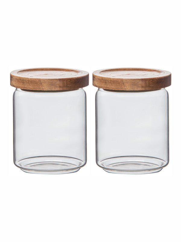 Goodhomes Glass Storage Jar With Wooden Lid (Set Of 2Pcs)