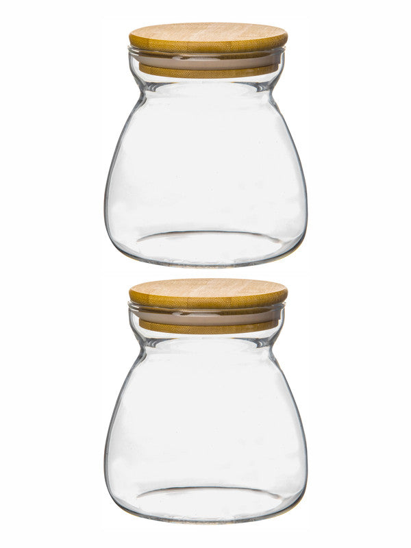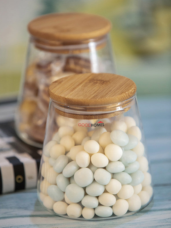 Goodhomes Glass Storage Jar with Wooden Lid (Set of 2pcs)