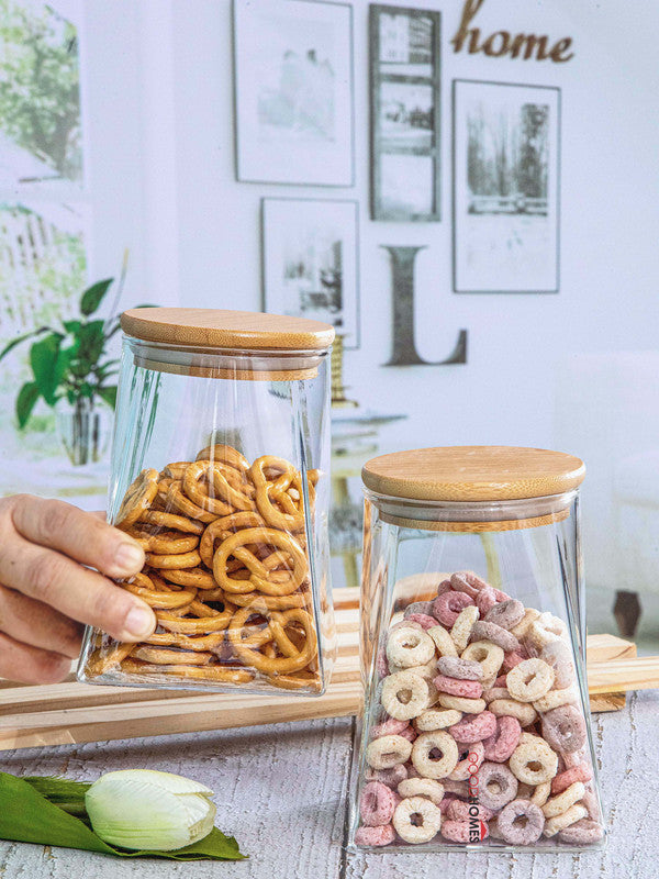 Goodhomes Glass Storage Jar with wooden Lid (Set of 2pcs)