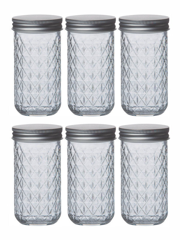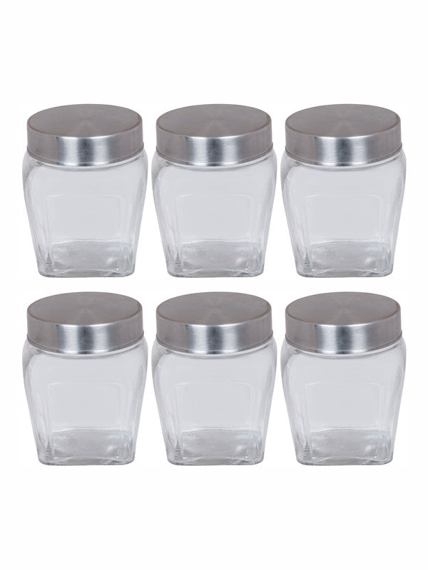 Goodhomes Glass Storage Jar with Silver Metal Lid (Set of 6pcs)