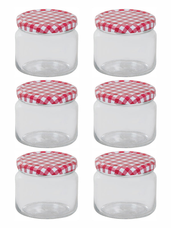Goodhomes Glass Storage Jar with Red checkered Lid(Set of 6 Pcs.)
