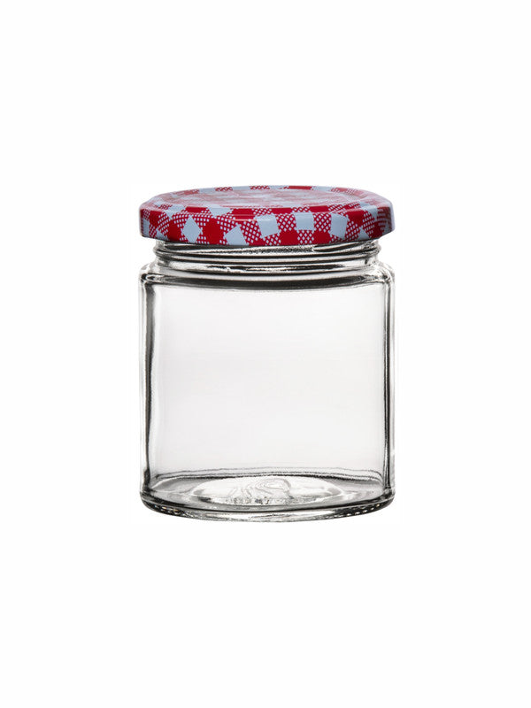 Goodhomes Glass Storage Jar with Red Checks Metal Lid (Set of 6pcs)