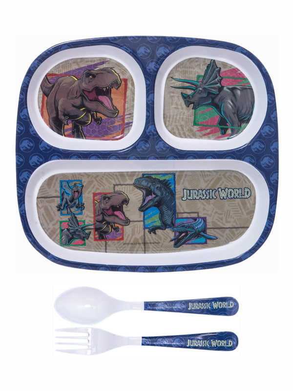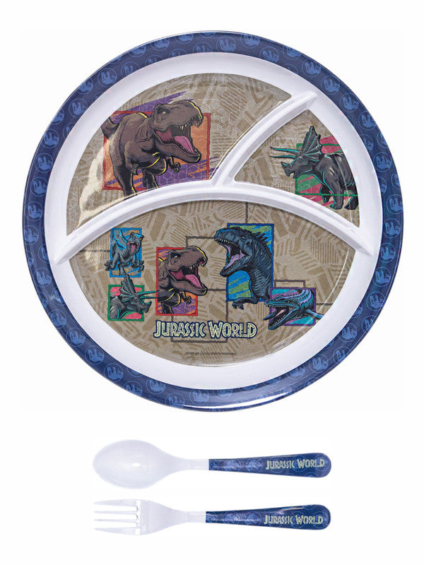 1 pc 5 Part Plate and 1 pc Fork & Spoon 16 cm Set 3 pc - Jurassic World