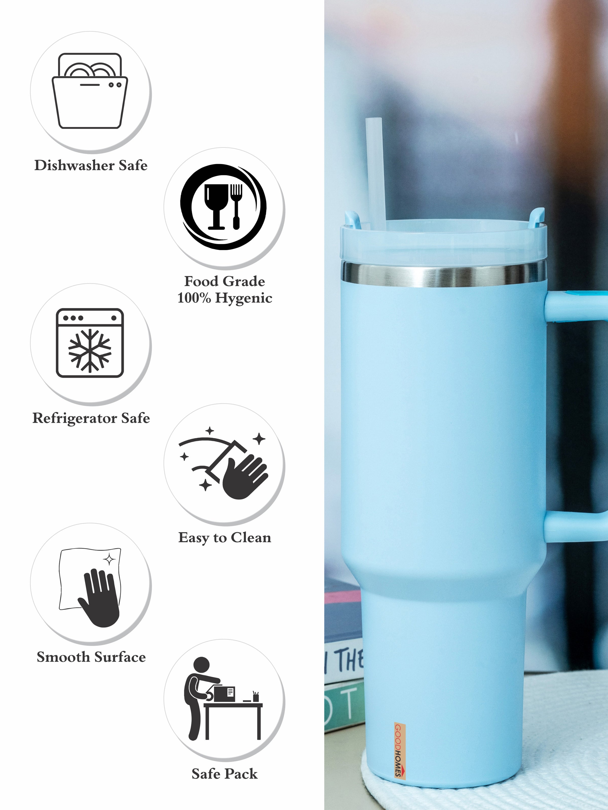 Stay refreshed wherever you go with this stylish vacuum bottle featuring a convenient handle and easy-to-use sipper. Designed for effortless carry, it’s perfect to take along to work, travel, workouts, or outdoor activities, helping you stay hydrated at all times. Crafted to keep beverages hot or cold for longer, the bottle comes in fashionable, trendy color and offers a durable, spill-resistant design that blends performance with modern style.