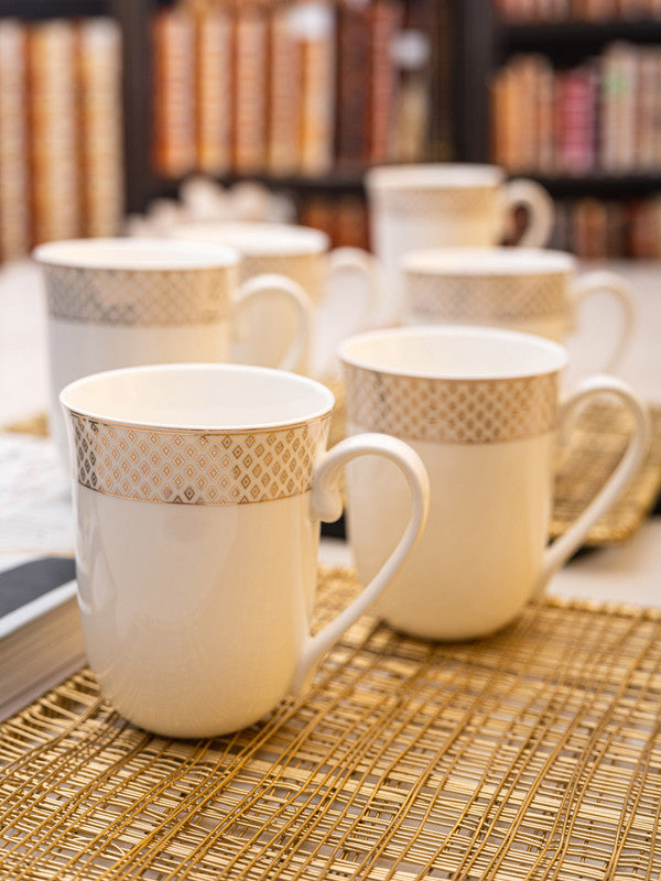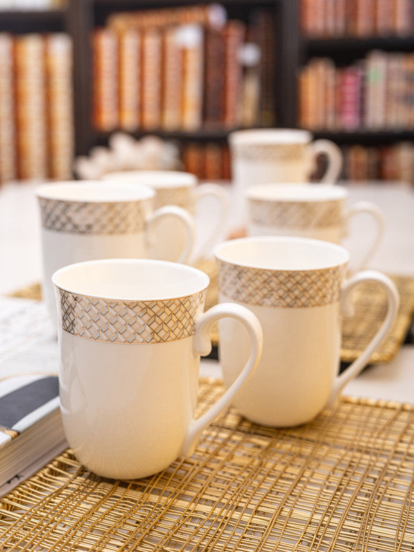 Porcelain Tea & Coffee Mug with Gold Print (Set of 6pcs)
