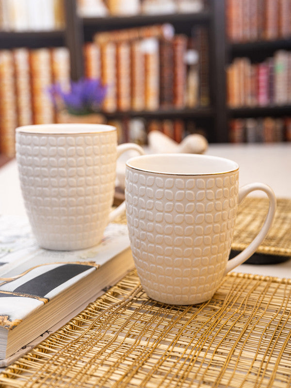 Porcelain Embossed Large Coffee Mug with Gold Line (Set of 2pcs)