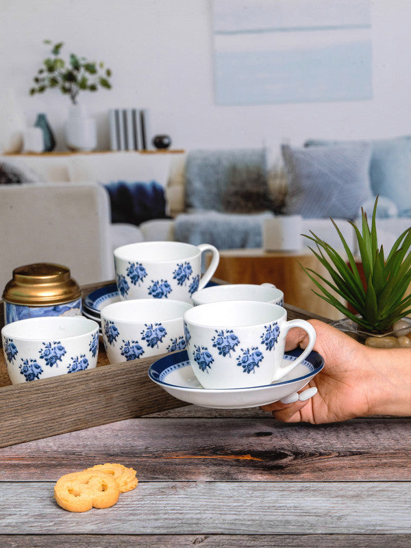 Bone China Cup Saucer Set with Delicate Border Design (Set of 12 pcs)