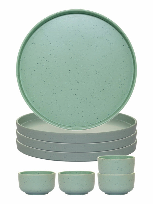 Servewell 4pcs Thali Dinner Plate With 4pcs Thali Veg Bowl (Set of 8 pcs) - Dots Green