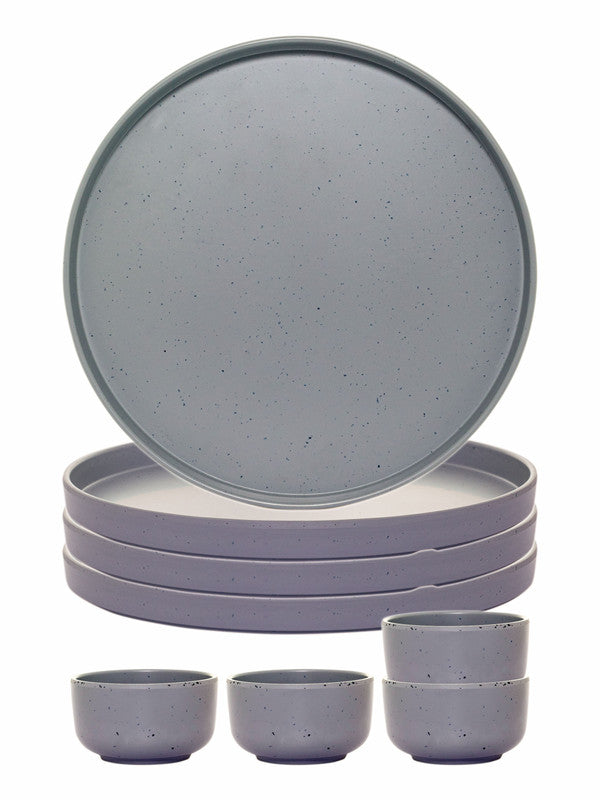Servewell 4pcs Thali Dinner Plate With 4pcs Thali Veg Bowl (Set of 8 pcs) - Dots Grey