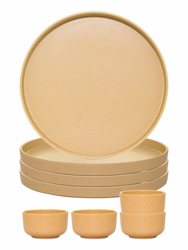Servewell 4pcs Thali Dinner Plate With 4pcs Thali Veg Bowl (Set of 8 pcs) - Dots Yellow