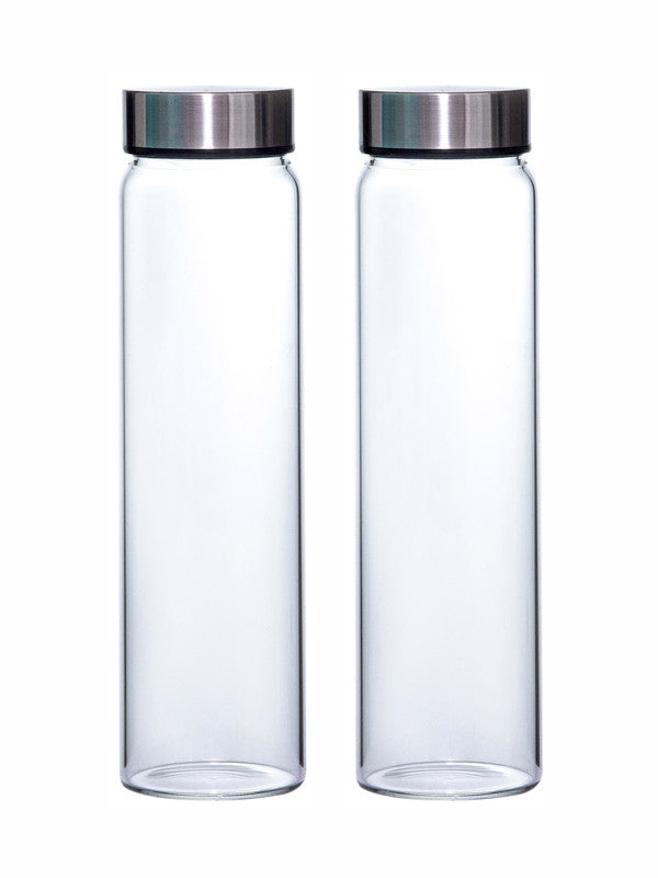 White Gold Transparent Borosilicate Glass Bottle (Set of 2pcs)
