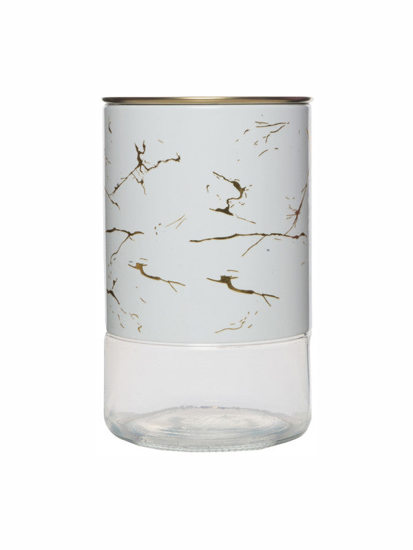 White Gold Glass Storage Jar with Metal cover and Push button Lid