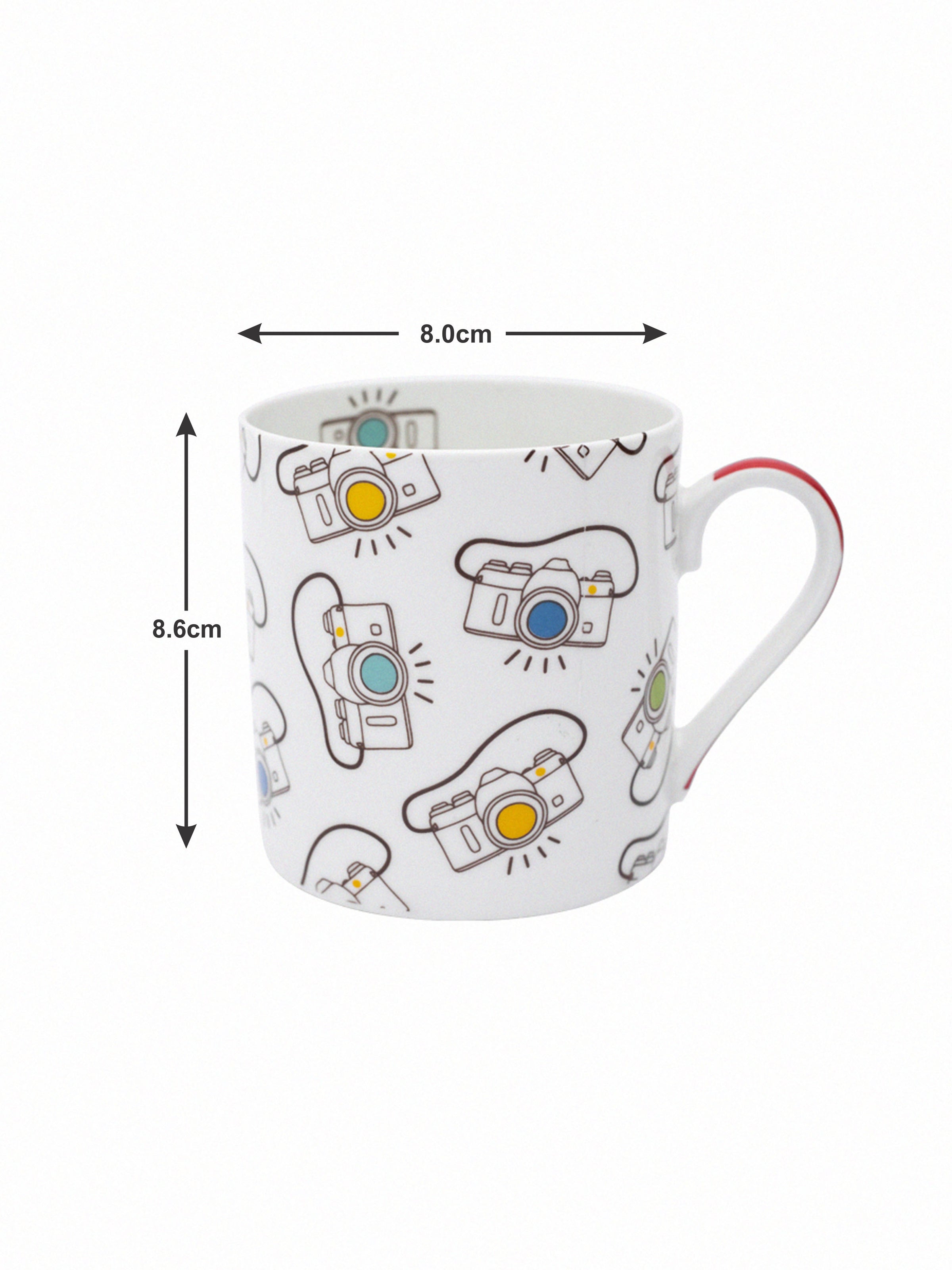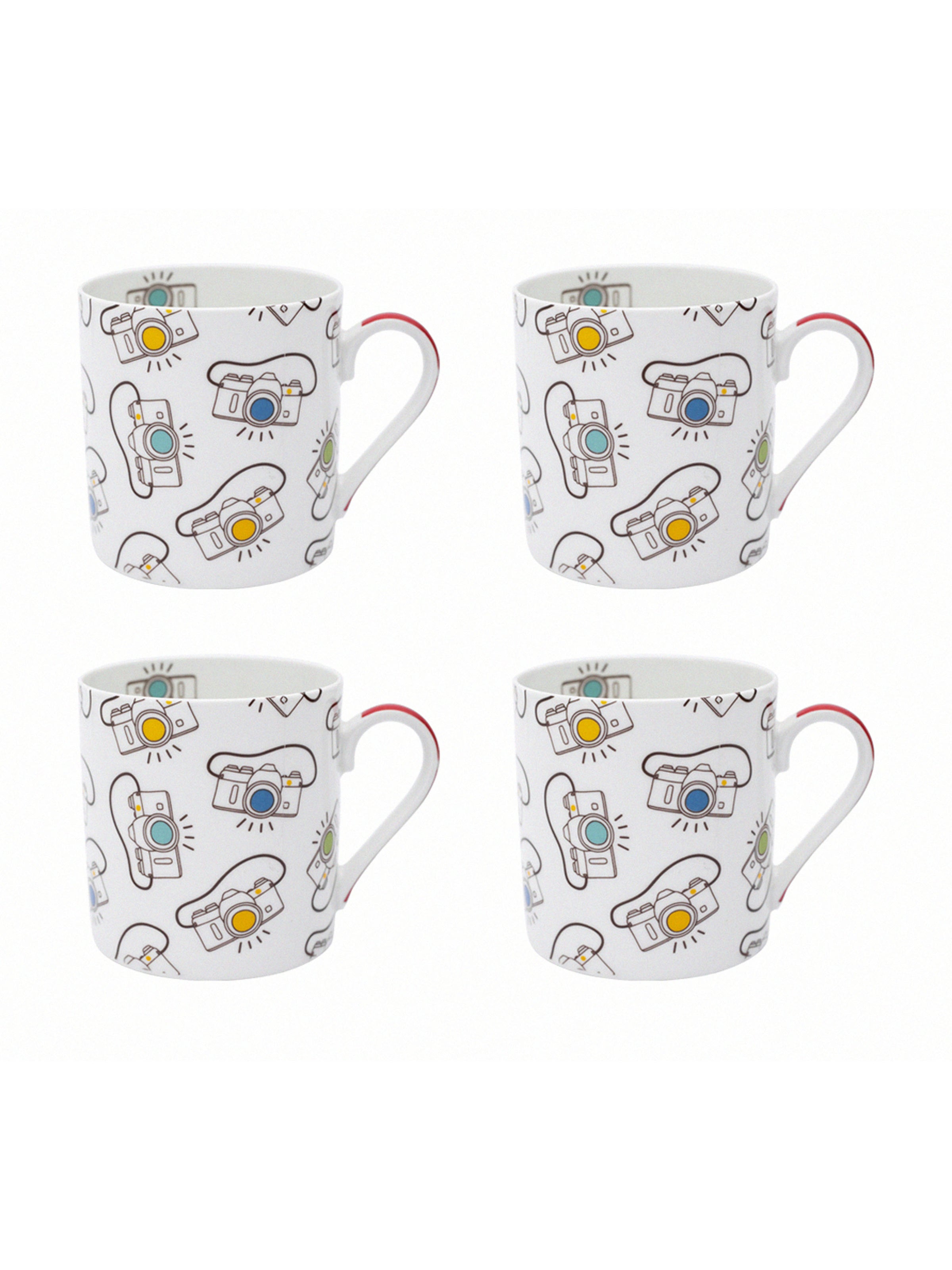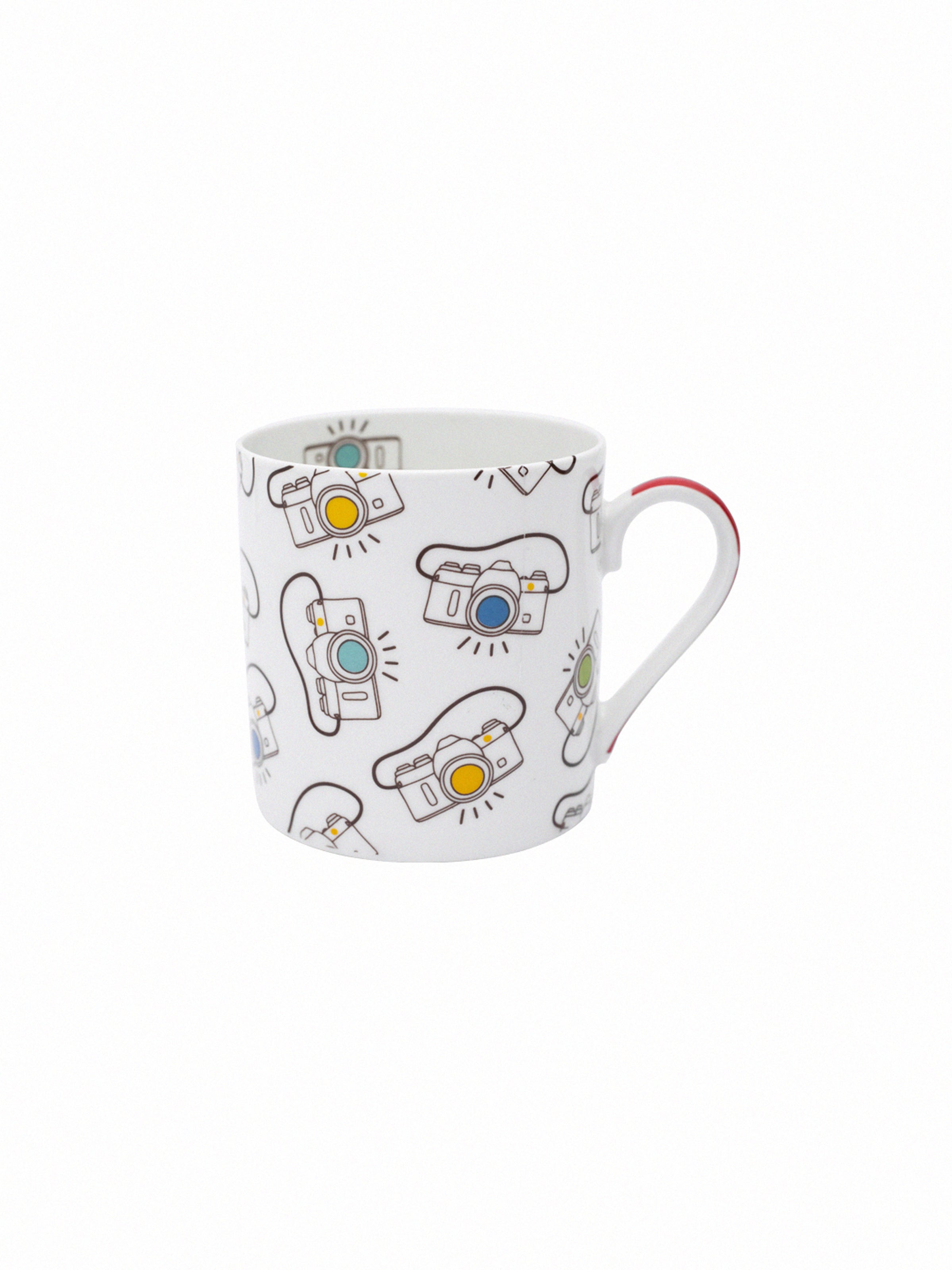 Energies your mornings with this upbeat fine bone china mug set. Perfect for a bigger brew, this large mug features a contemporary, artistic camera print design that's sure to add a little color to the cupboard. Perfect for those who enjoy their morning latte or even for those who want a bigger cup of tea, these large mugs will not disappoint.