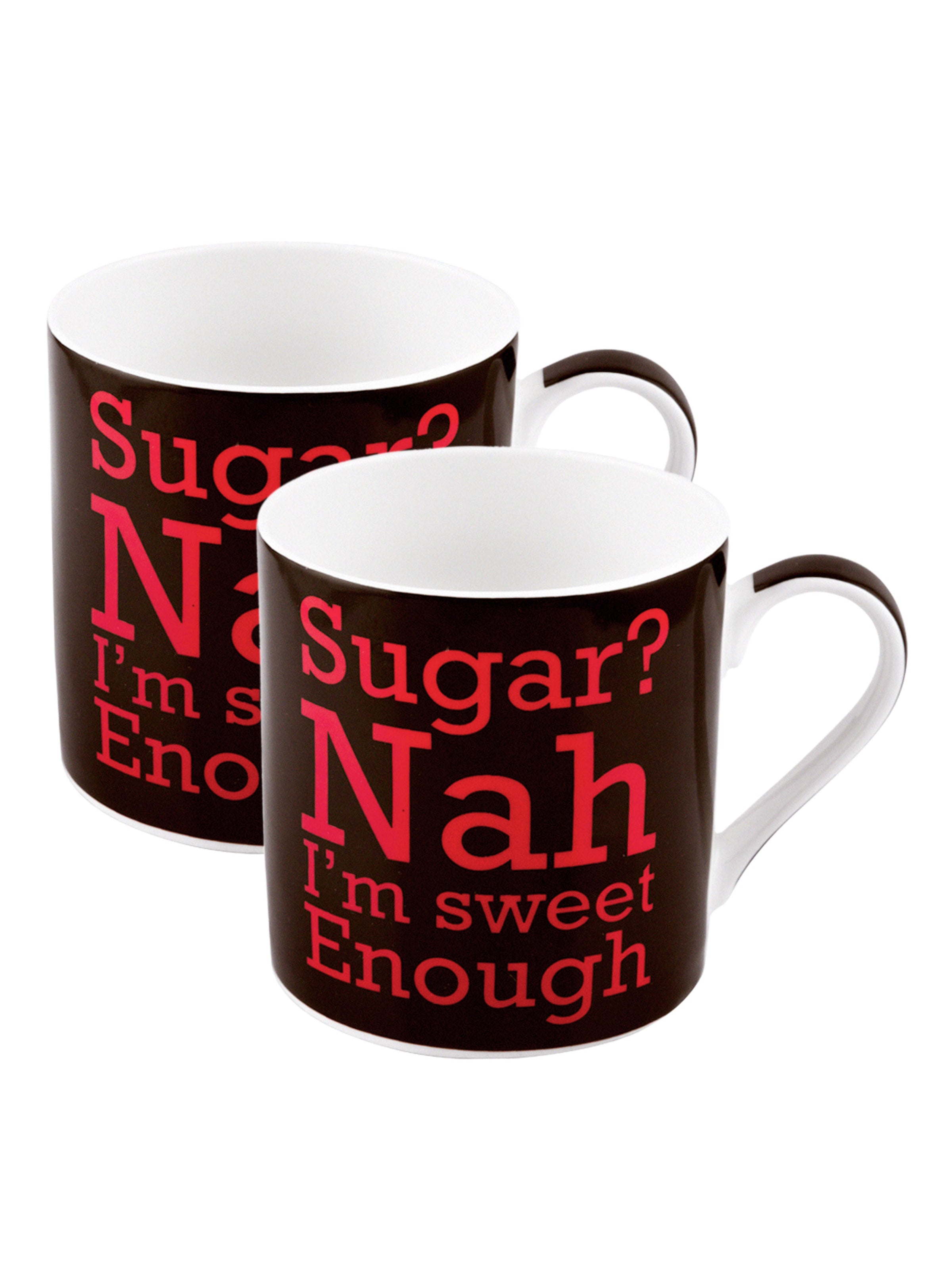 Make a statement every time you pour tea or coffee in this eye catching slogan mug. Its versatile size makes it equally well suited to serving latte as it does to brewing standard cups of tea. This stylish slogan mug set makes a great gift for friends. This bone china mug set is made from high quality materials to ensure it lasts through many cups of coffee and tea.
