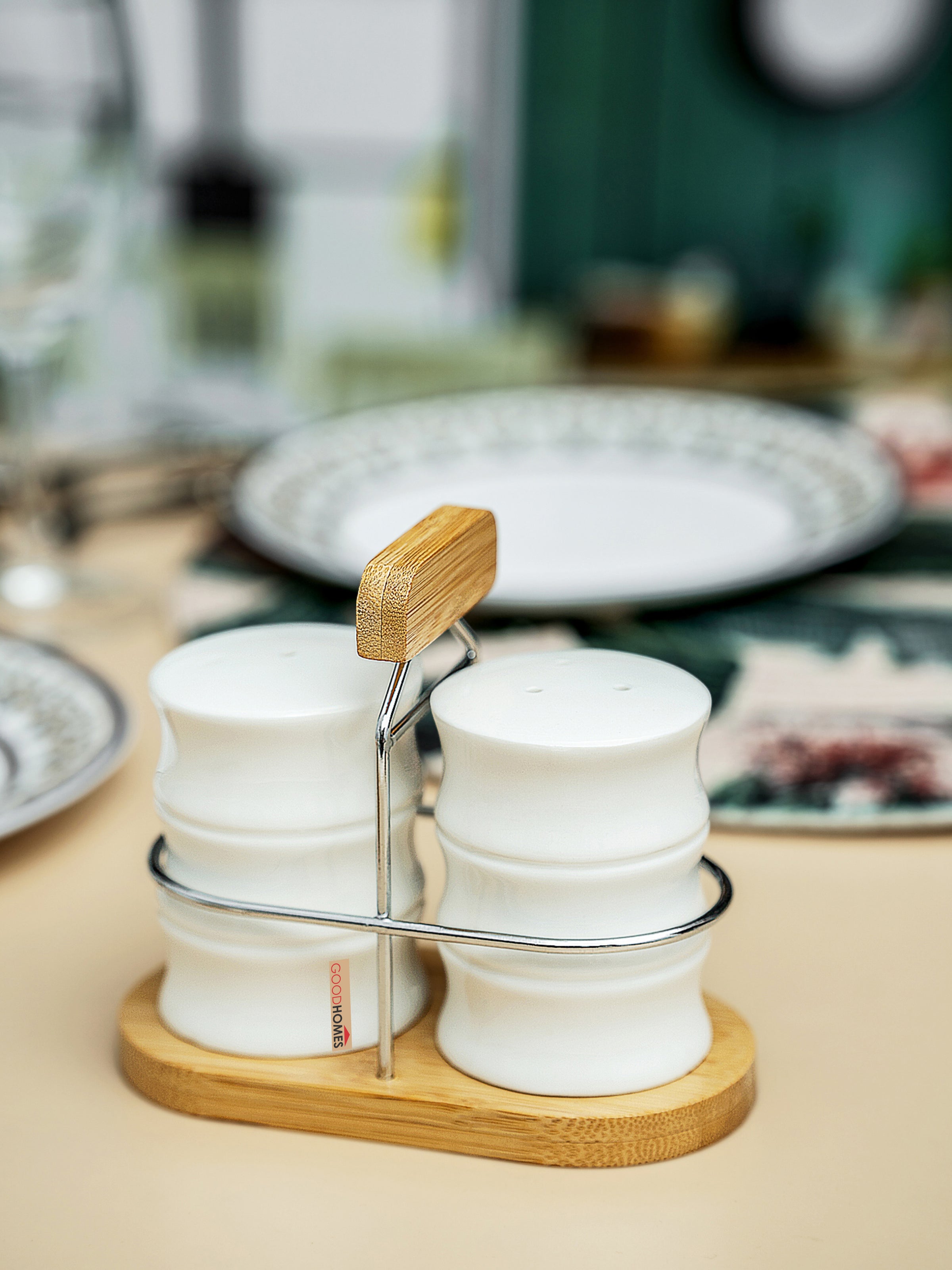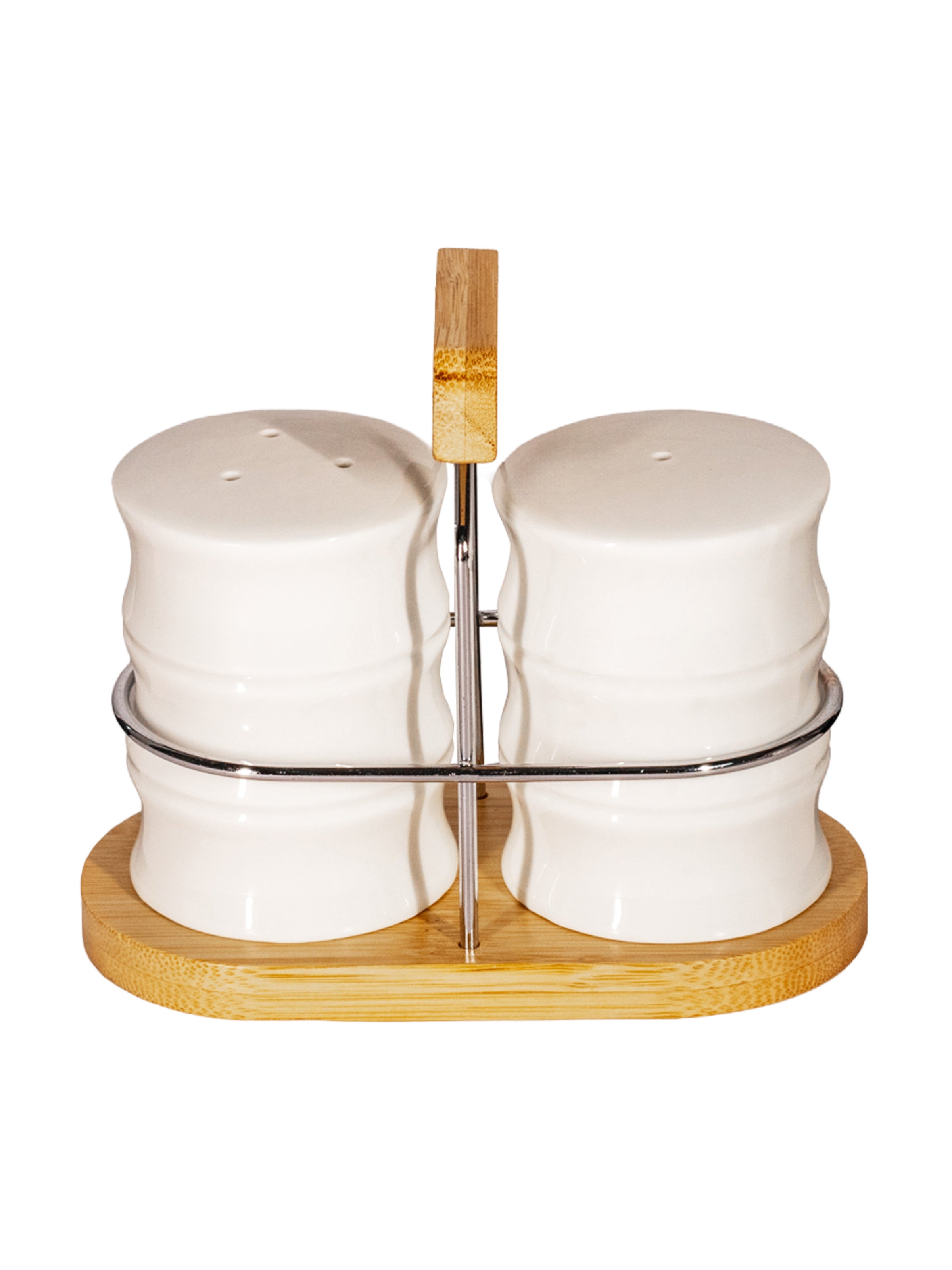 Porcelain Salt & Pepper Set with Wooden Stand