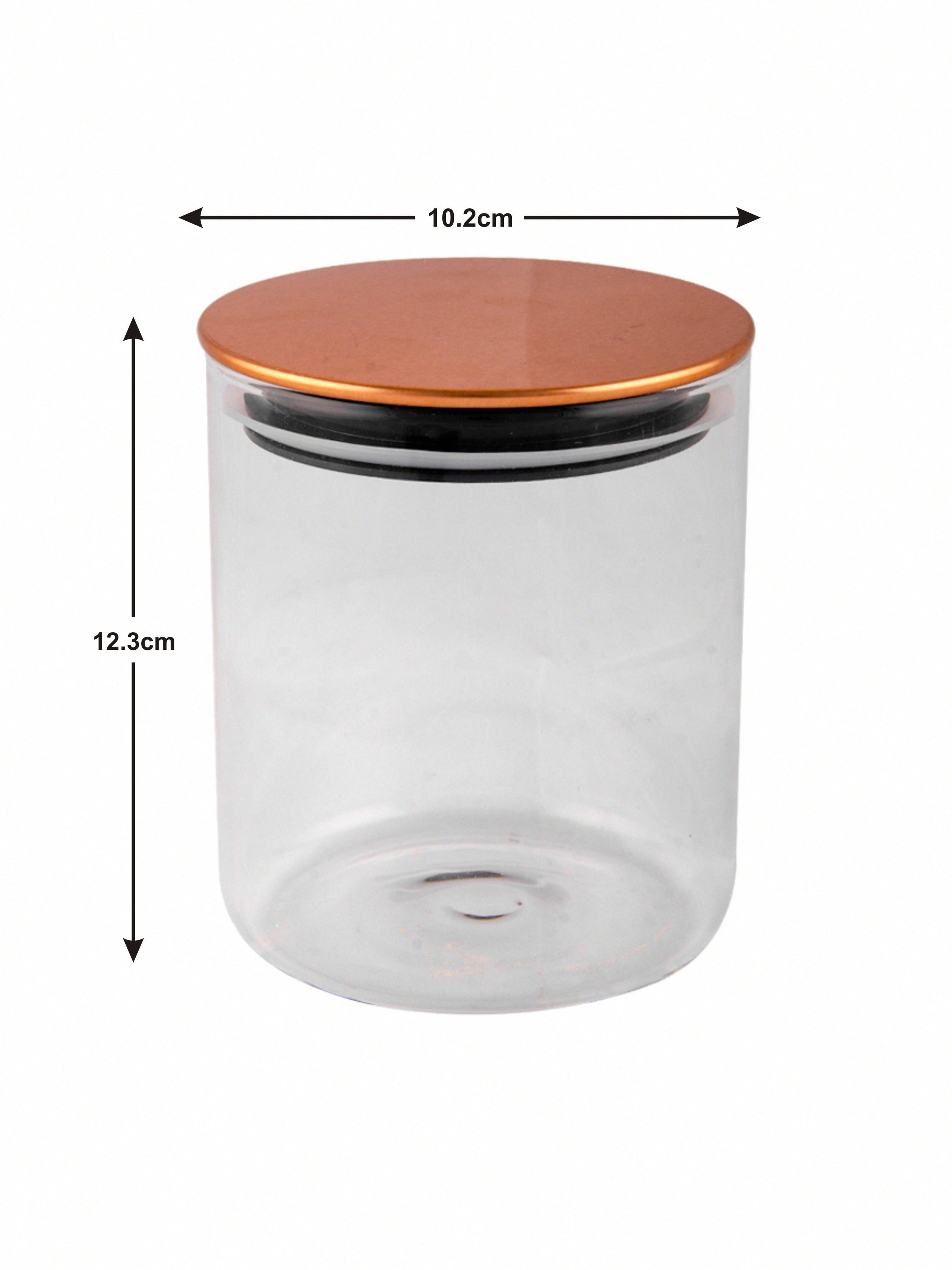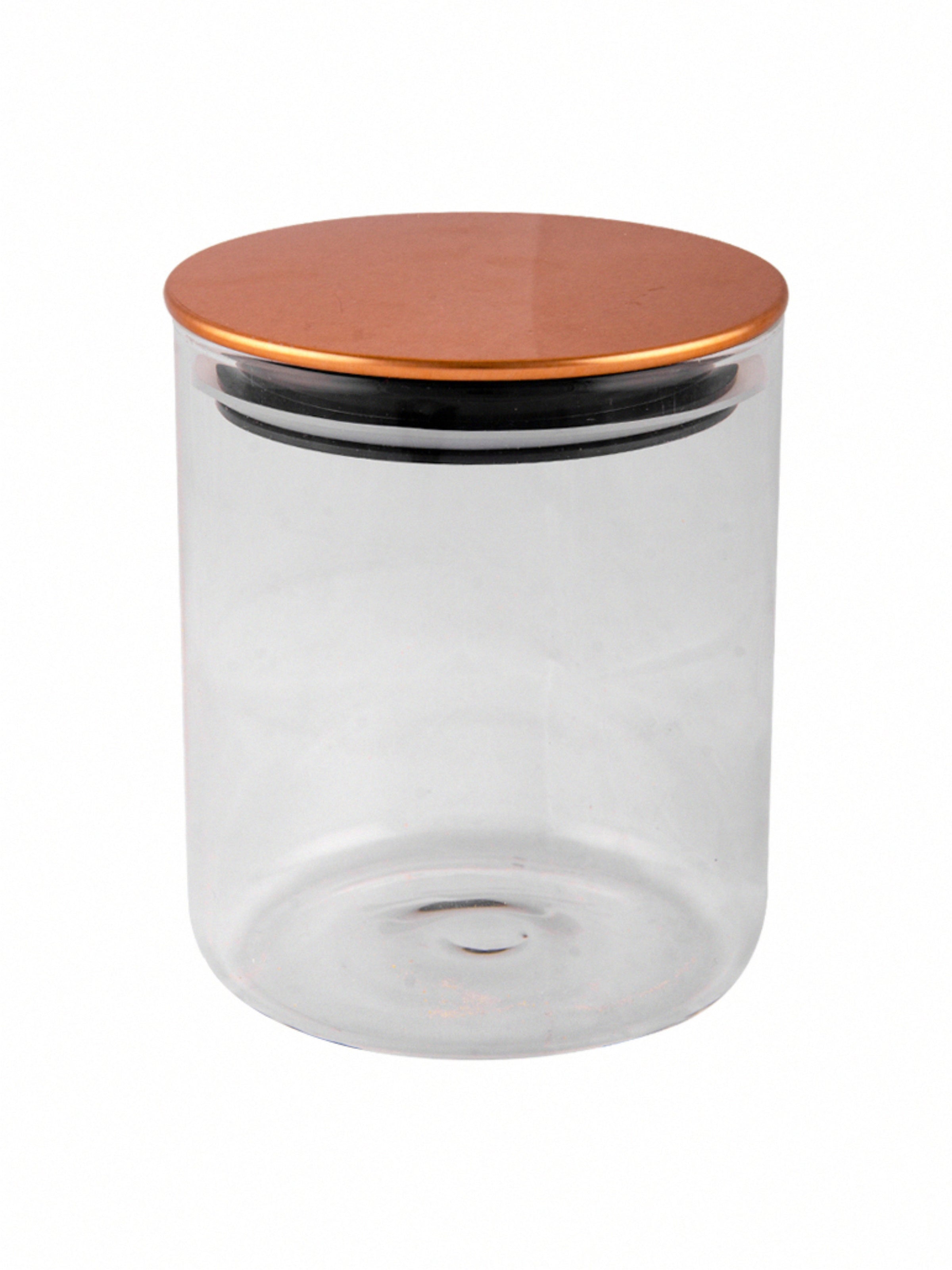 Store and elegantly display foods in borosilicate glass jars with copper finish lids. Theses jars are durable, clear, scratch resistant, not to mention stylish. Made from 100% Borosilicate Glass, these jars can be put directly in the oven or microwave (without the lid) to endure that the food remains fresh in the most humid weather. The jars can be used to store anything from pulses, grains, pasta in the kitchen to dry fruits and snacks in your living spaces.