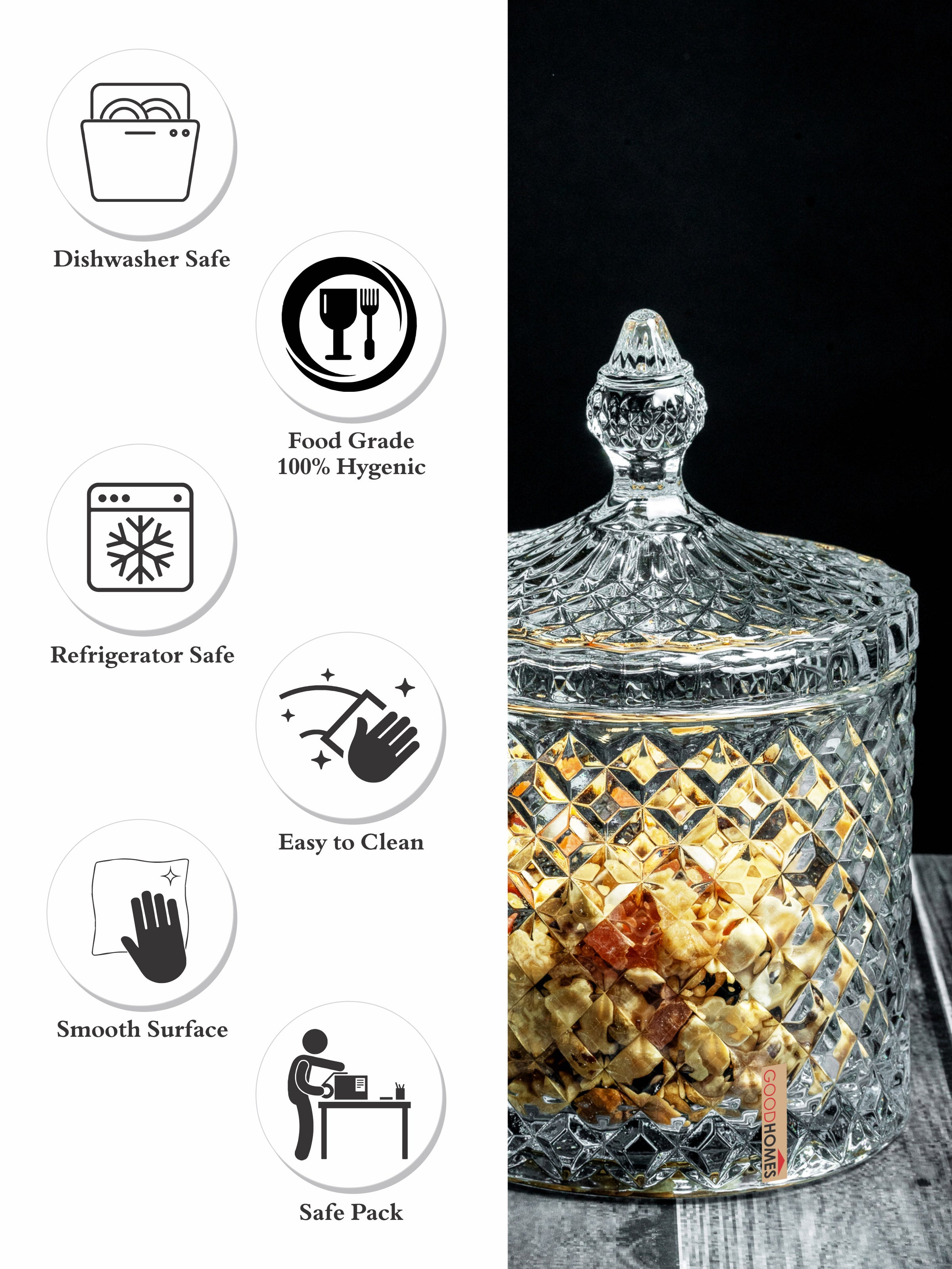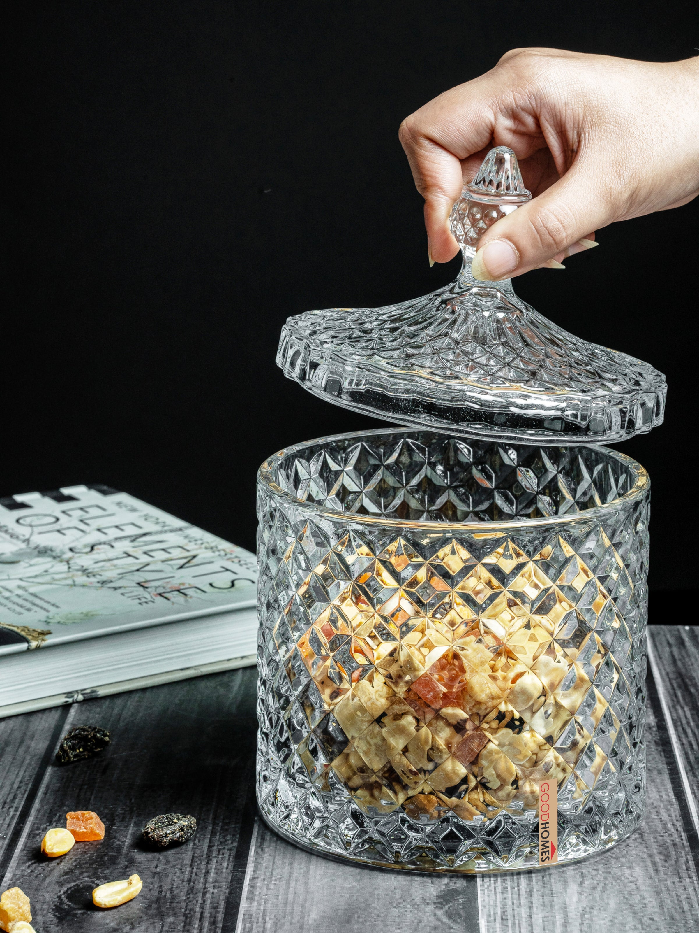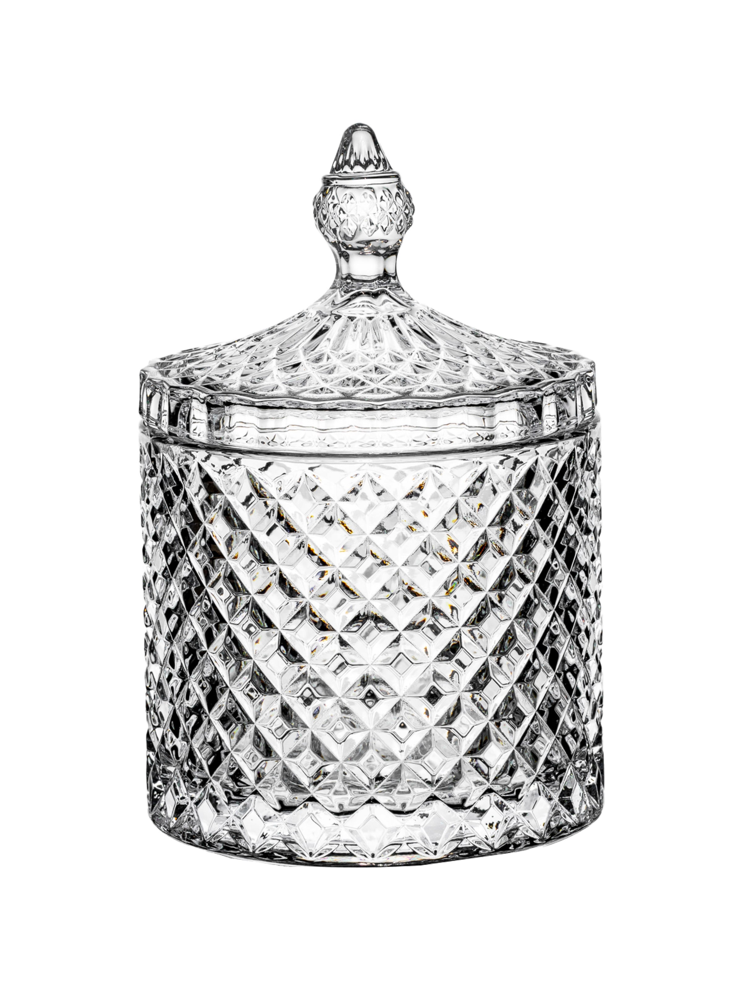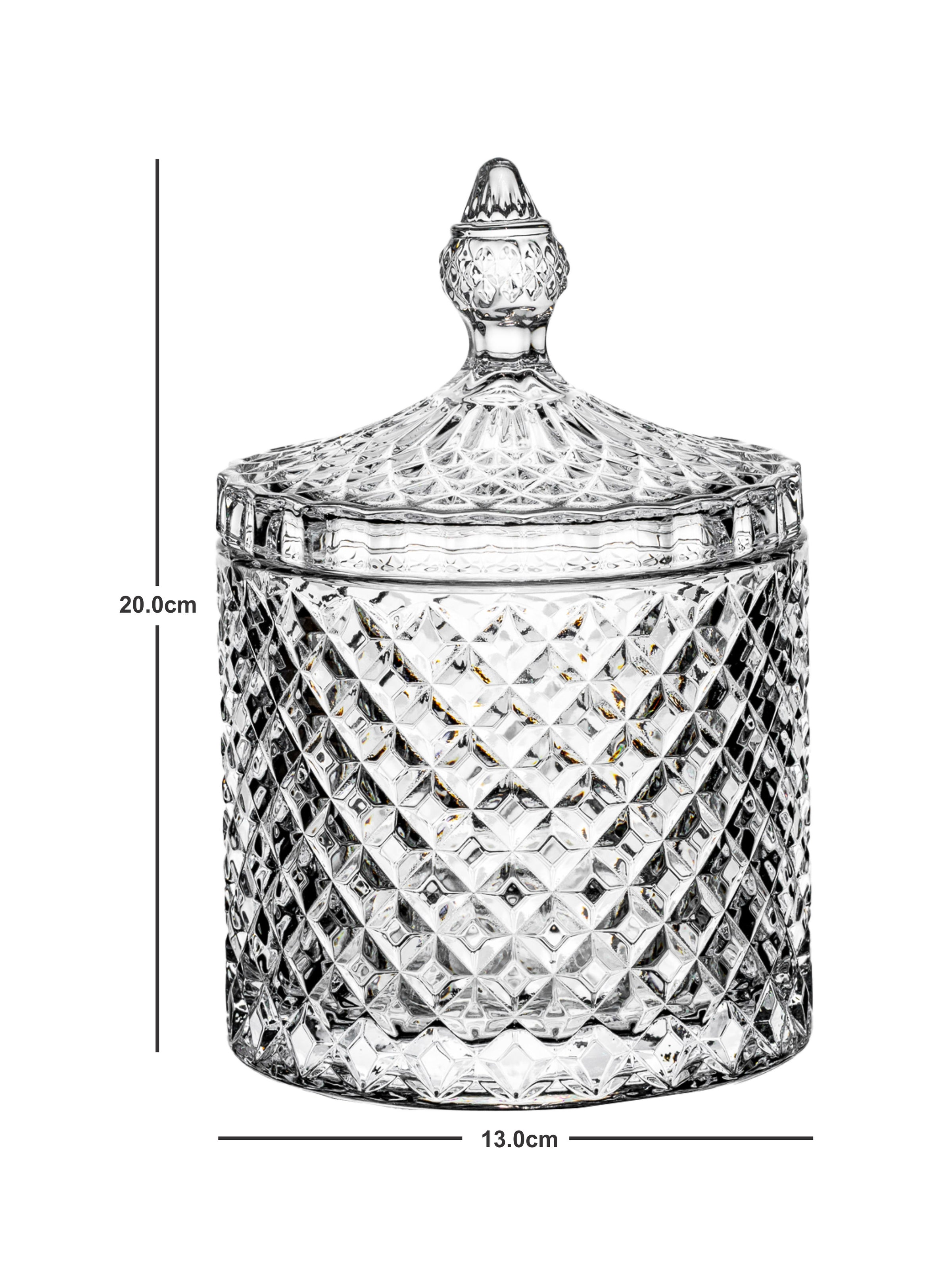 Ready to hold all those essential nibbles for your family and friends to pick through the days and evenings, our Candy bowl is sure to impress your guests. Each piece is crafted from high quality glass with a lid and is filled with oodles of charm that effortlessly combines art and functionality. You can fill the bowl with nuts or nibbles and it will be a statement centrepiece for all your parties.