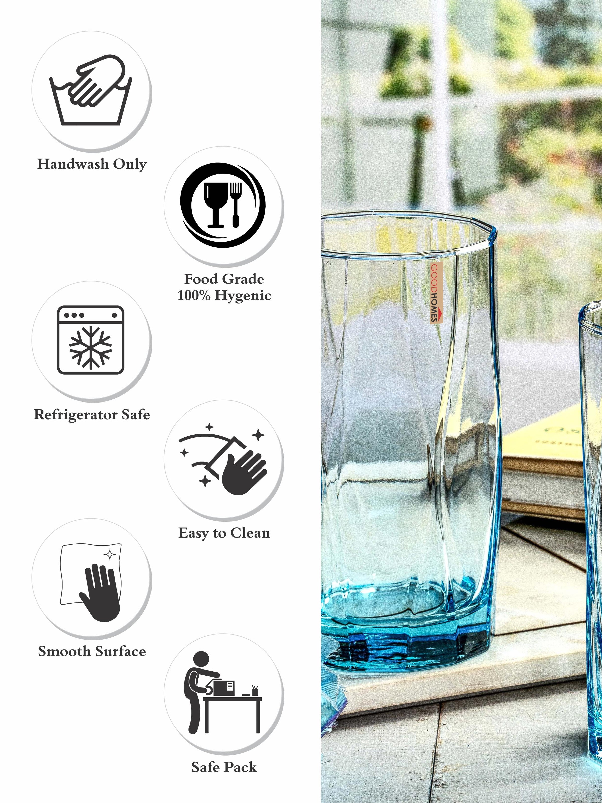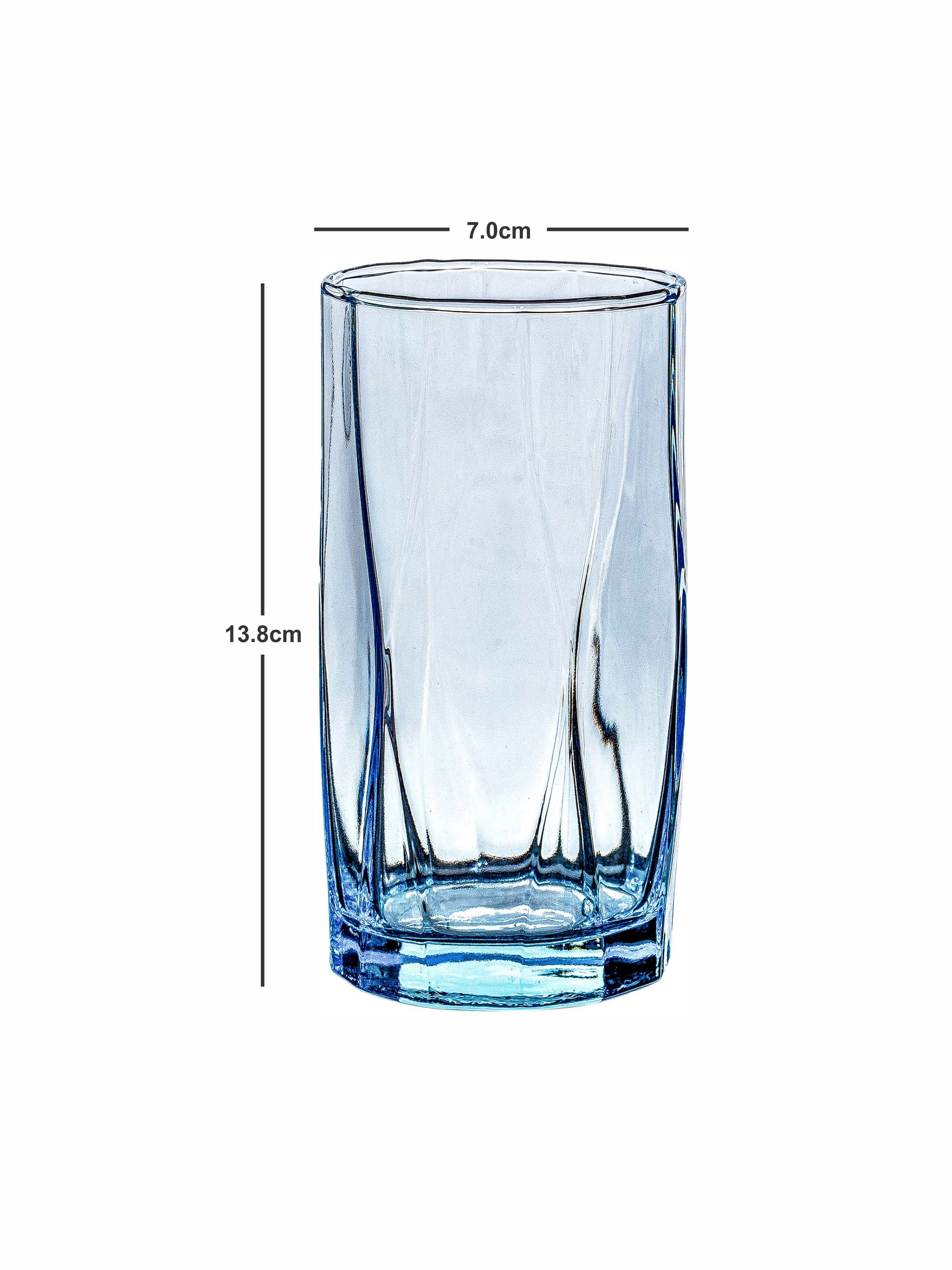 The perfect choice of drinking glasses to stock the cupboard with when moving into a new home. This tumbler set with Blue tint is a stylish solution to update your current selection. This set of drinking glasses has a beautiful contemporary shape, sure to fit in with any styled home. Each of the glasses is conveniently dishwasher safe, making them perfect for using every day.