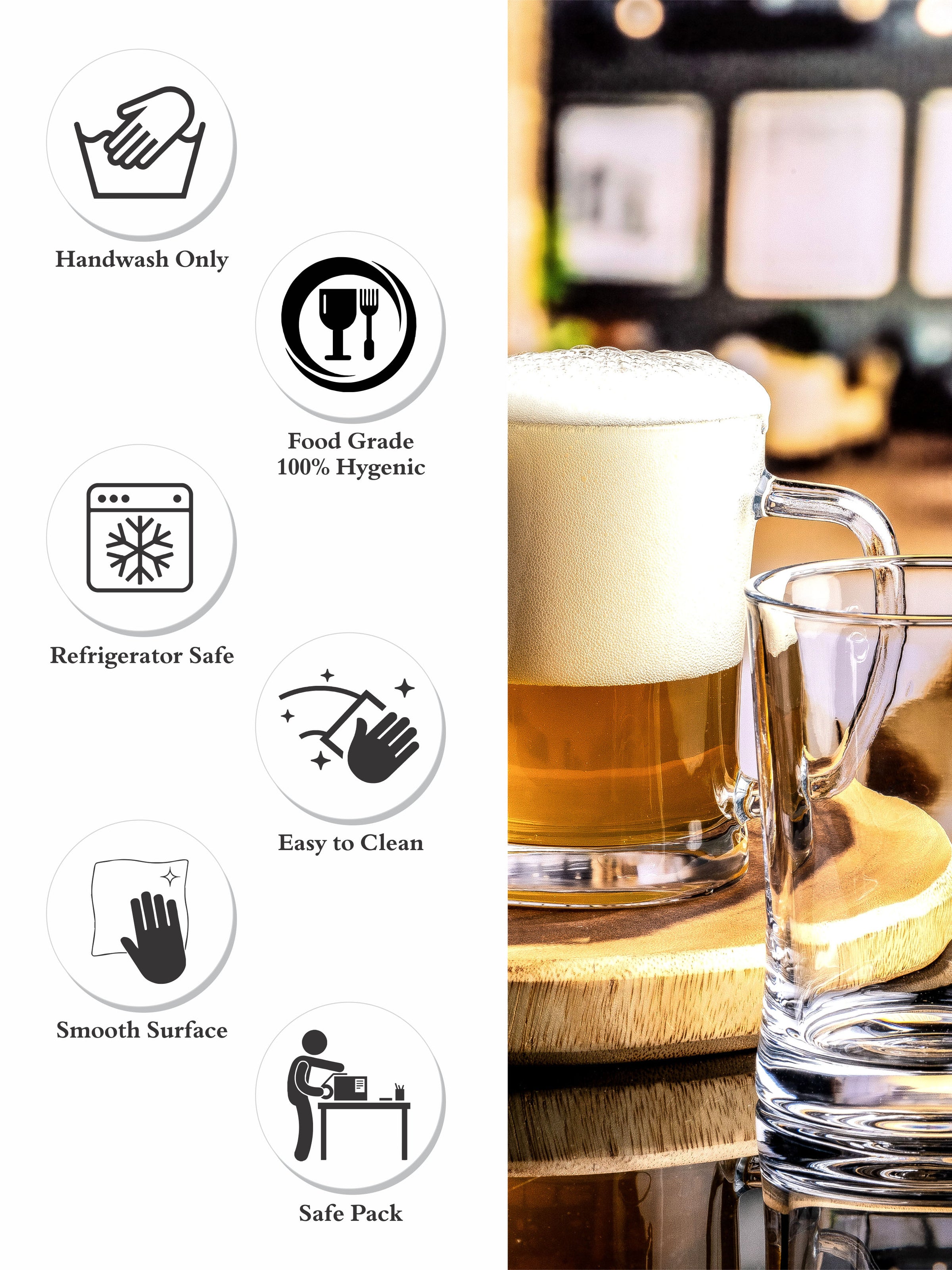 Sip your favorite beer or ale in this elegant beer mug. It's simplistic design ensures that your beer remains cold whilst you sit back and relax. This mug has a generous capacity for any beer choice. Its heavy base and glass handle makes it easy to grasp and a pleasure to use.