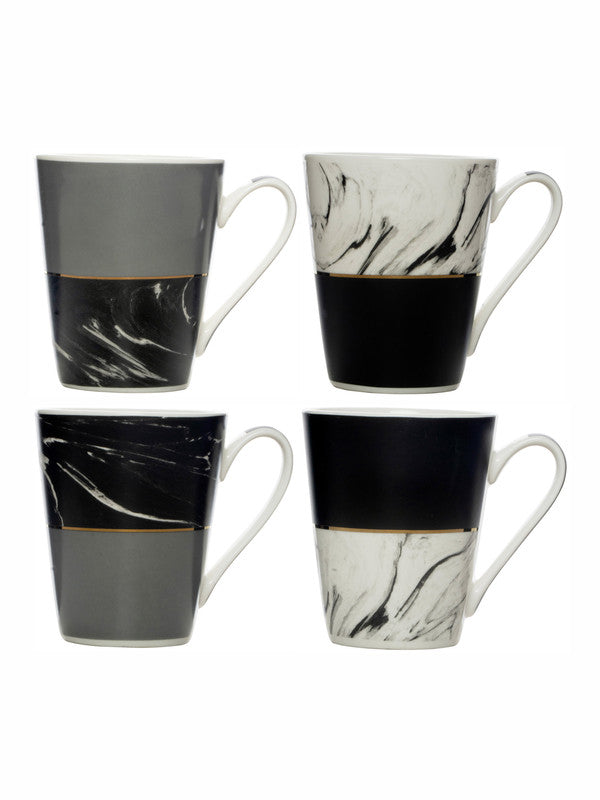 White Gold Porcelain Coffee/tea Mug with Gold Print (Set of 4pcs)