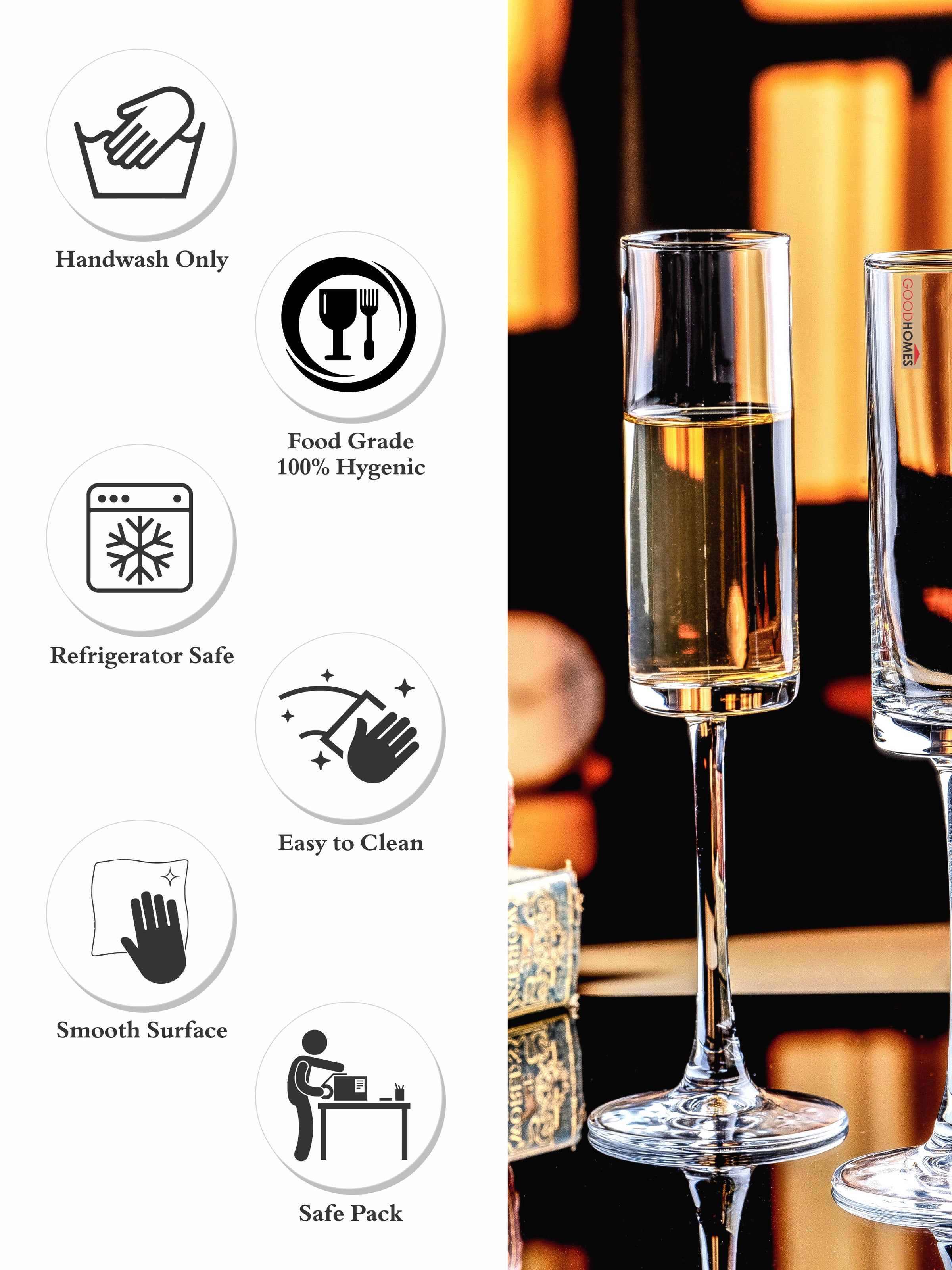 There’s nothing like a cold glass of bubbly to kick off any celebration, so serve your fizz in grand style with classic champagne flutes. These champagne glasses are carefully crafted to keep your choice of sparkling beverage crisp and beautifully bubbly. These dishwasher safe glasses, ensures you are ready for impromptu toasts. Serve your choice of cava, prosecco or champagne in an elegant glass with a traditional fluted shape and gracefully slim stem.