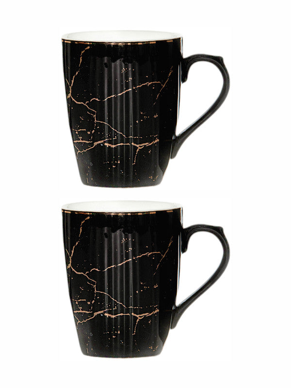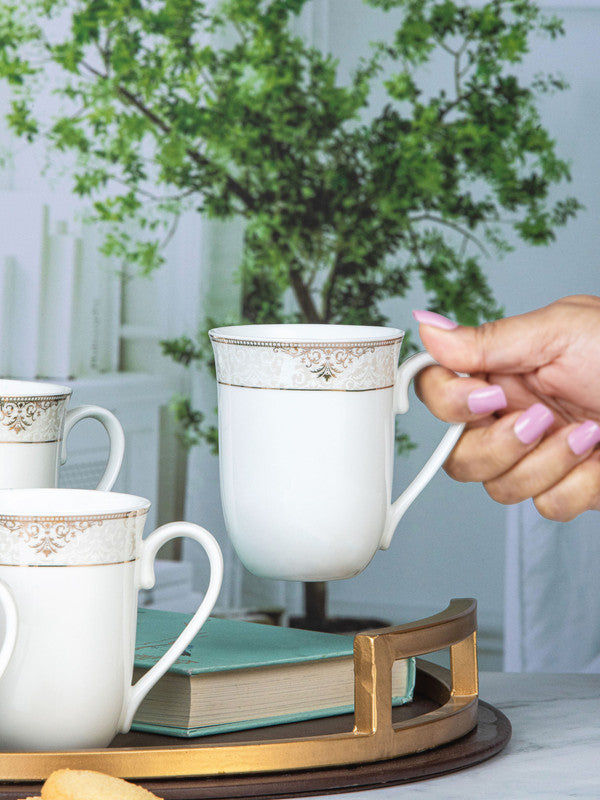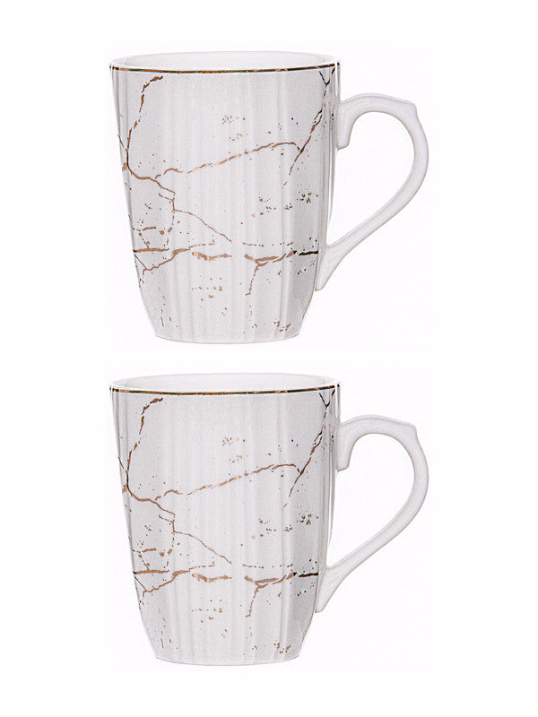 White Gold Porcelain Large Coffee Mug with Gold Print (Set of 2pcs)