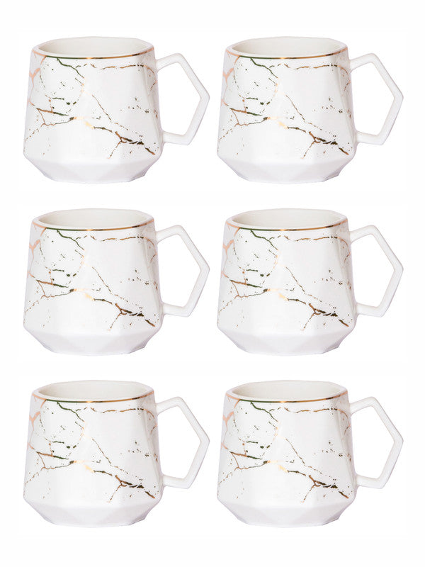 White Gold Porcelain Coffee/Tea Mugs with Marble Print (Set of 6pcs)