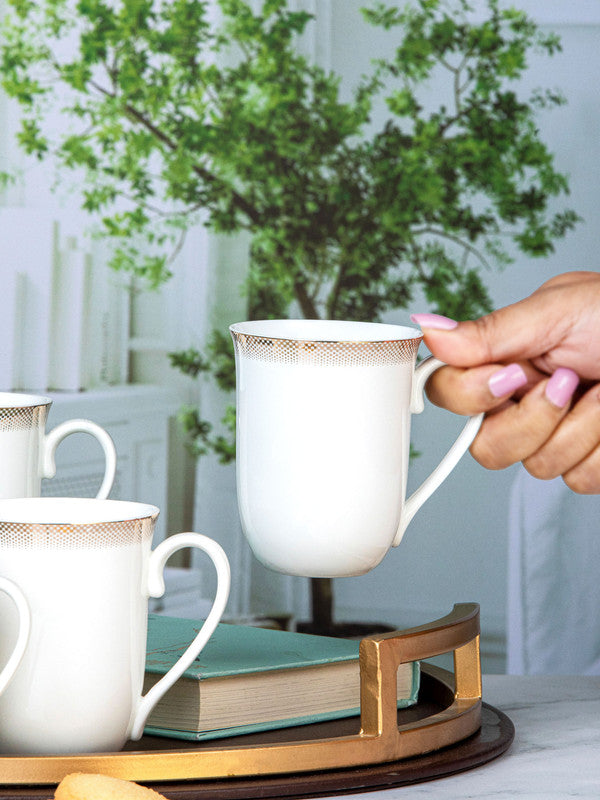White Gold Porcelain Tea/Coffee Mug with Gold Print (set of 6pcs)