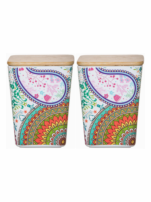 Stehlen Colored Melamine Storage Canister with Airtight Wooden Lid (Set of 2pcs)