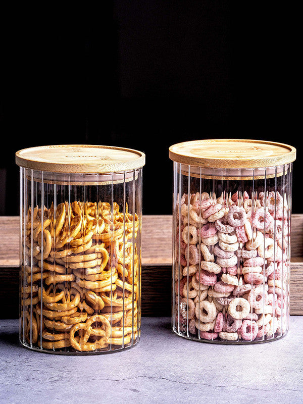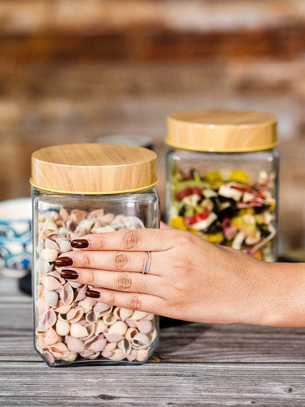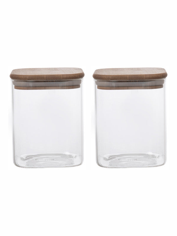 Goodhomes Glass Storage Jar with Wooden Lid (Set of 2pcs)