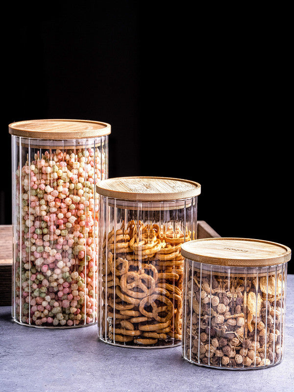 Goodhomes Glass Jar set with Wooden Lid (Set of 1pc each of Large, Medium, Small)