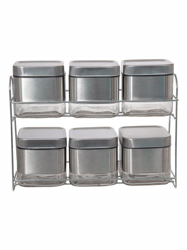Goodhomes Glass Storage Jar Set with Metal Rack (Set of 6pcs Jar & 1pc Rack)